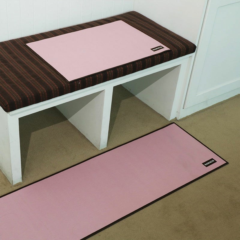 空間に、やさしい変化を。 MELLOW FOOT MATは、バスルームやキッチンなど、インテリアの印象をつくりにくい場所にこそ取り入れたいフットマットです。 水分を素早く吸収し、乾きも早い設計で、毎日使っても清潔感をキープ。 珪藻土を含んだ生地を使用しており、硬すぎず柔らかすぎない、なめらかな踏み心地が特徴です。素足で触れても冷たさを感じにくく、長時間使っていても快適にお使いいただけます。 パステルカラーをアクセントカラーで縁取った配色は、主張しすぎず、それでいて空間のポイントに。 すっきりとしたフォルムと落ち着いたカラーリングが、日常の空間に自然と溶け込みます。 裏面全体には滑り止め加工を施し、安定感のある使用感に。 しっかりと床にフィットするため、小さなお子様のいるご家庭でも安心してお使いいただけます。 サイズは 40×60cm / 40×120cm の2サイズ展開。 水洗いが可能で、お手入れも簡単。日常使いにちょうどいい一枚です。