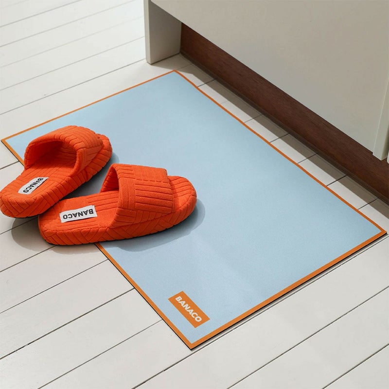 空間に、やさしい変化を。 MELLOW FOOT MATは、バスルームやキッチンなど、インテリアの印象をつくりにくい場所にこそ取り入れたいフットマットです。 水分を素早く吸収し、乾きも早い設計で、毎日使っても清潔感をキープ。 珪藻土を含んだ生地を使用しており、硬すぎず柔らかすぎない、なめらかな踏み心地が特徴です。素足で触れても冷たさを感じにくく、長時間使っていても快適にお使いいただけます。 パステルカラーをアクセントカラーで縁取った配色は、主張しすぎず、それでいて空間のポイントに。 すっきりとしたフォルムと落ち着いたカラーリングが、日常の空間に自然と溶け込みます。 裏面全体には滑り止め加工を施し、安定感のある使用感に。 しっかりと床にフィットするため、小さなお子様のいるご家庭でも安心してお使いいただけます。 サイズは 40×60cm / 40×120cm の2サイズ展開。 水洗いが可能で、お手入れも簡単。日常使いにちょうどいい一枚です。