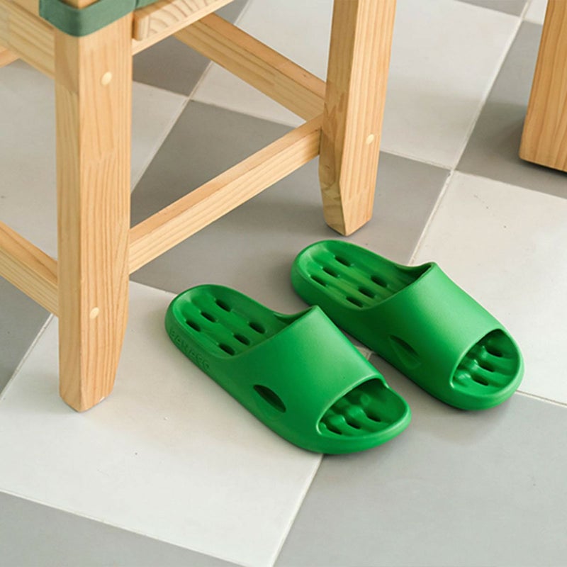 軽やかで、頼れる一足。 TOV SLIPPERは、ビビッドなカラーが目を引く軽量シャワーサンダルです。ベランダやバスルームはもちろん、ワンマイルシューズとしても活躍する汎用性の高さが魅力。 底面には15個、サイドには2個、合計17個の水抜きホールを配置。水はけに優れ、湿気がこもりにくく、清潔な状態を保ちやすい設計です。アウトソールは5つの溝とストライプパターンで構成され、滑りを最小限に抑えた安定感のある履き心地に仕上げています。 素材には柔軟性と耐久性に優れたEVA素材を採用。ねじっても変形しにくく、足をやさしく包み込むようなしなやかさが特徴です。 Mサイズは片足約100g、Lサイズでも片足約130gと非常に軽量で、長時間の着用でも足への負担を感じにくく、快適にお使いいただけます。 2.5cmの程よいボリューム感を持つアウトソールが、安定感とさりげない存在感をプラス。日常のさまざまなシーンに、気軽に取り入れられる一足です。