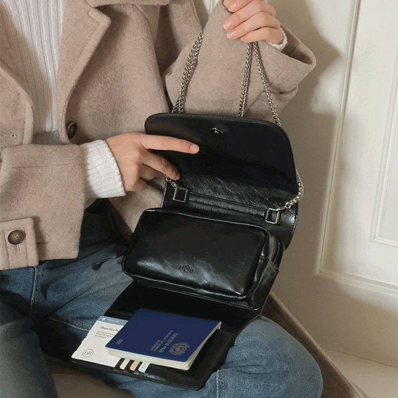 (Large) Passport Bag + Chain Strap - black
