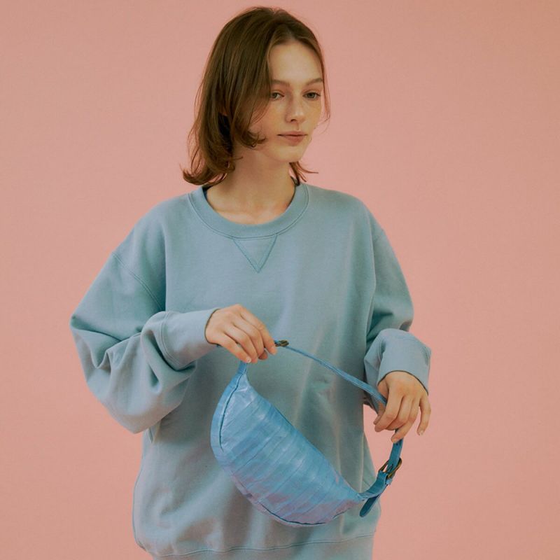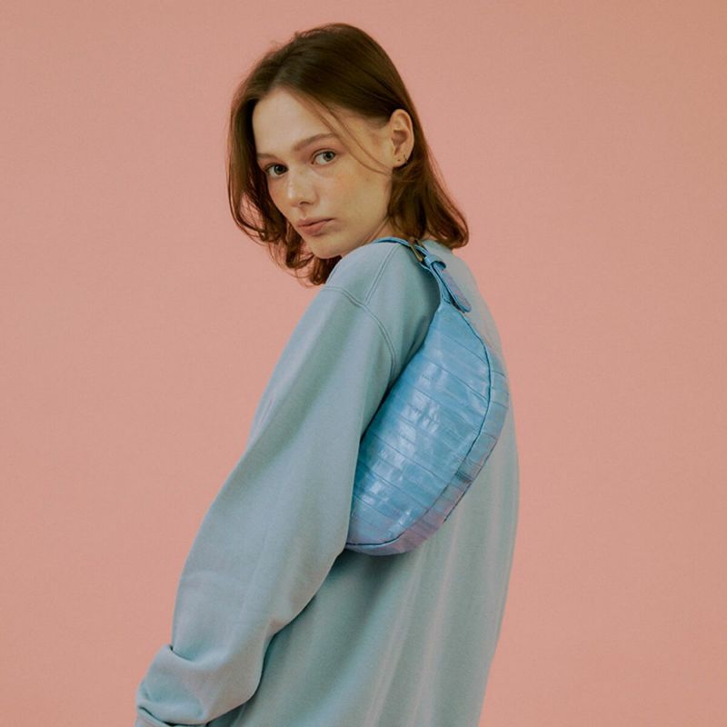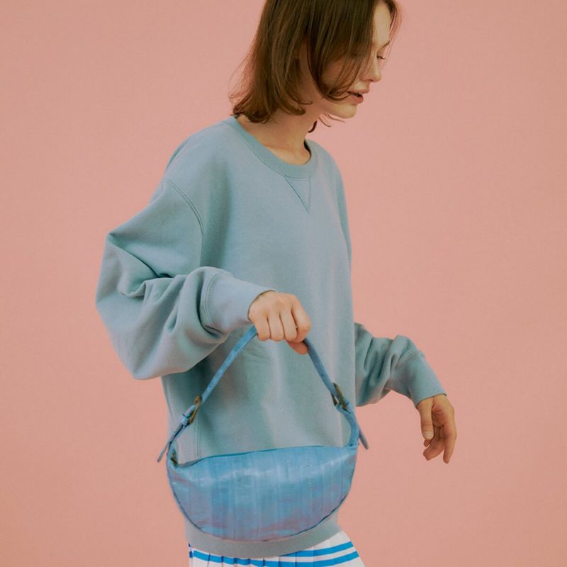 クロワッサンのような可愛いシェイプがポイントのバッグです。