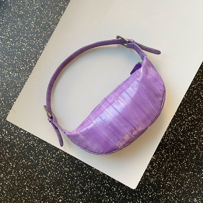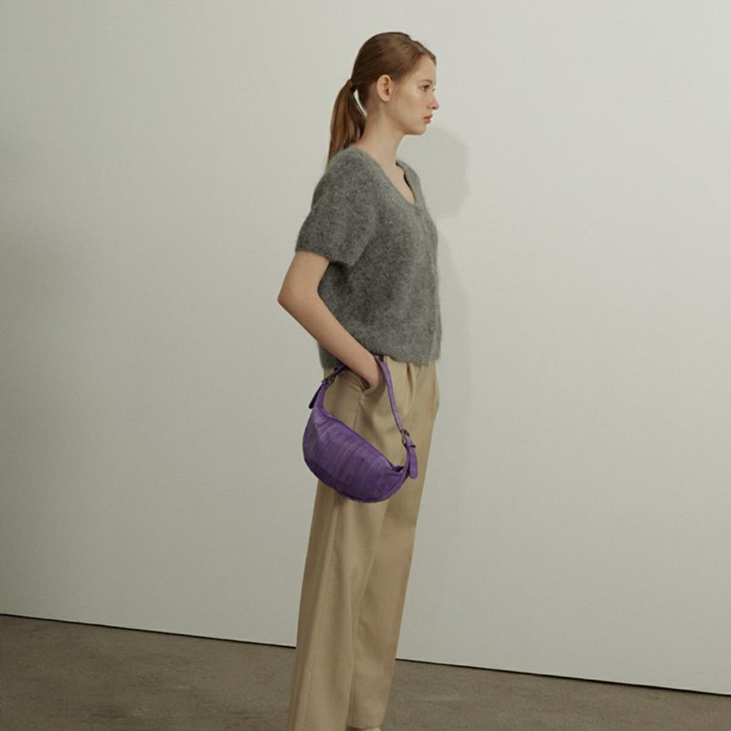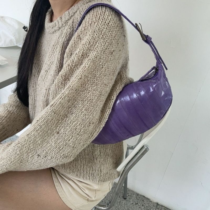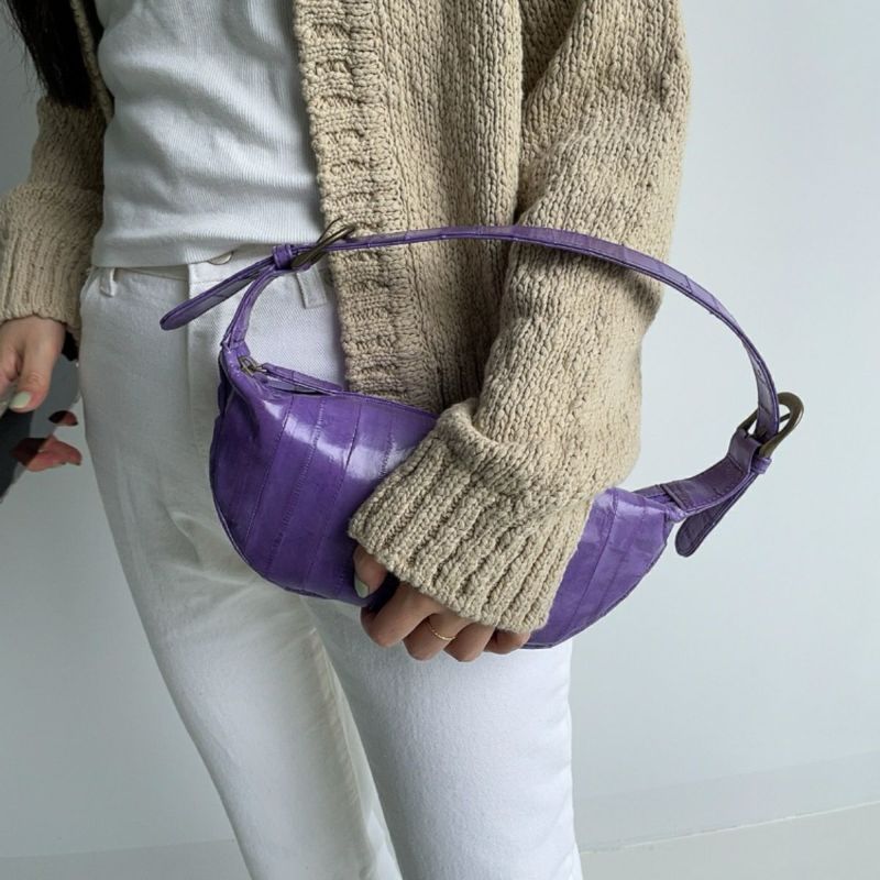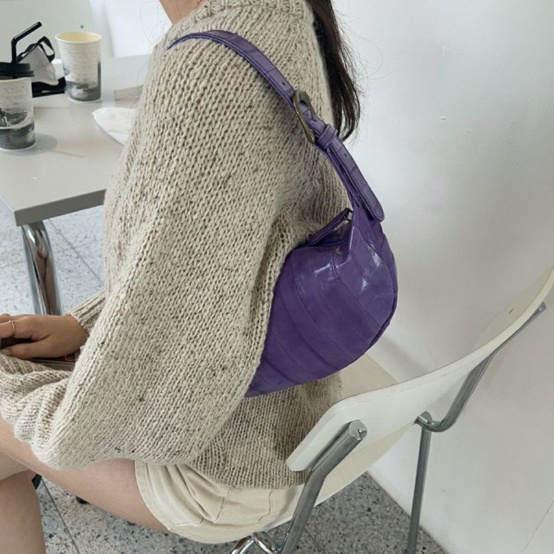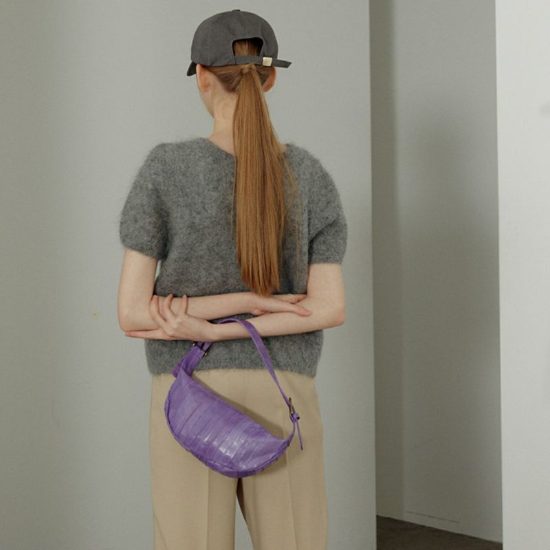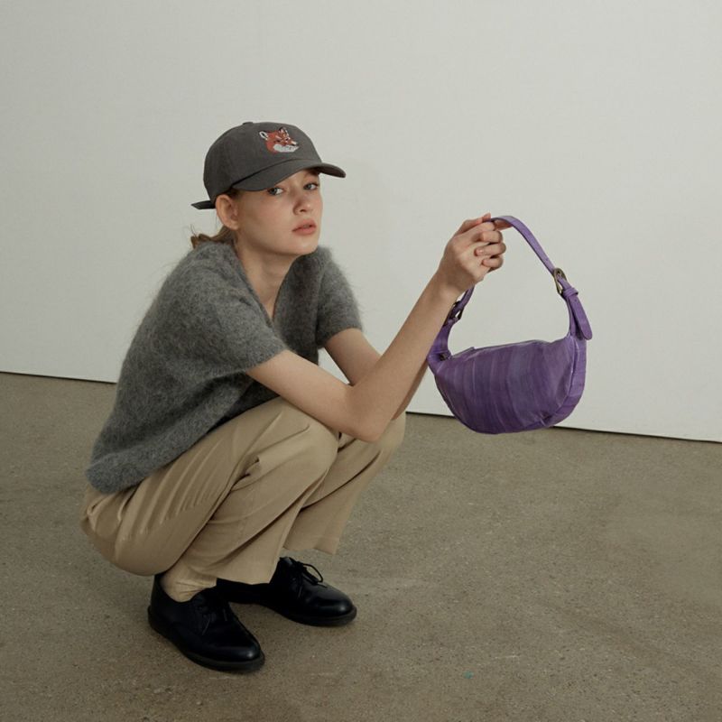 クロワッサンのような可愛いシェイプがポイントのバッグです。