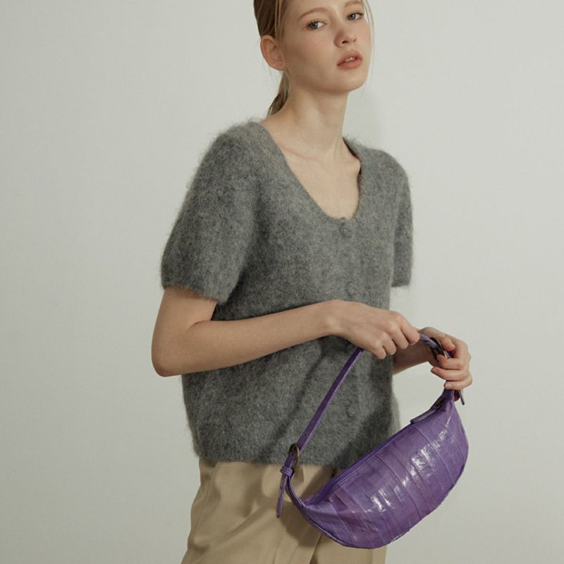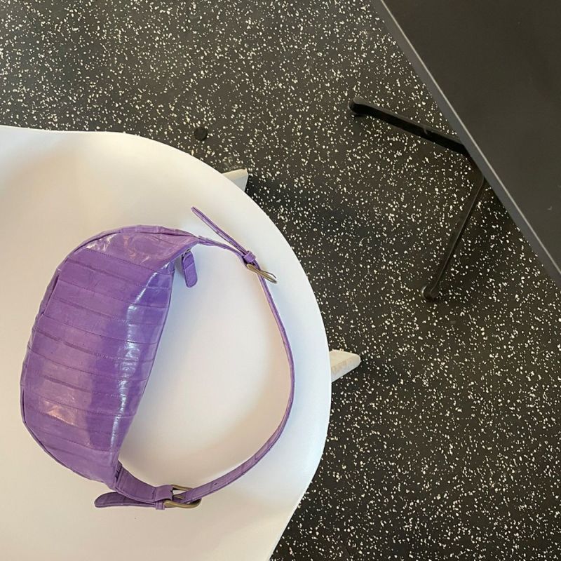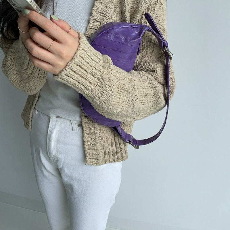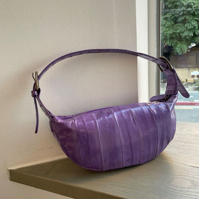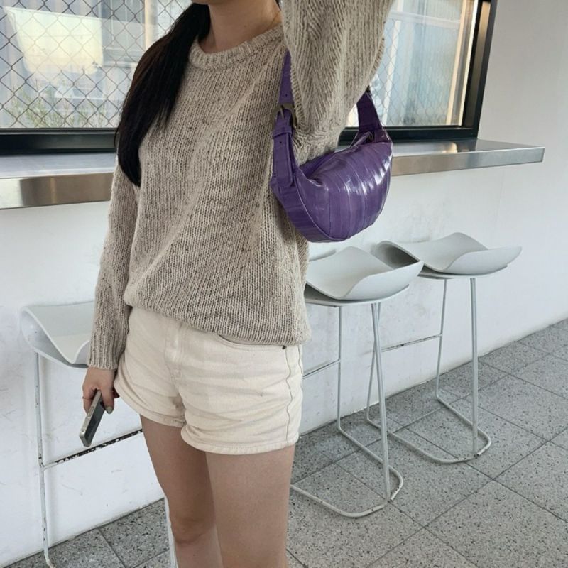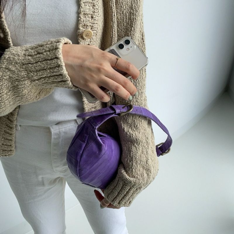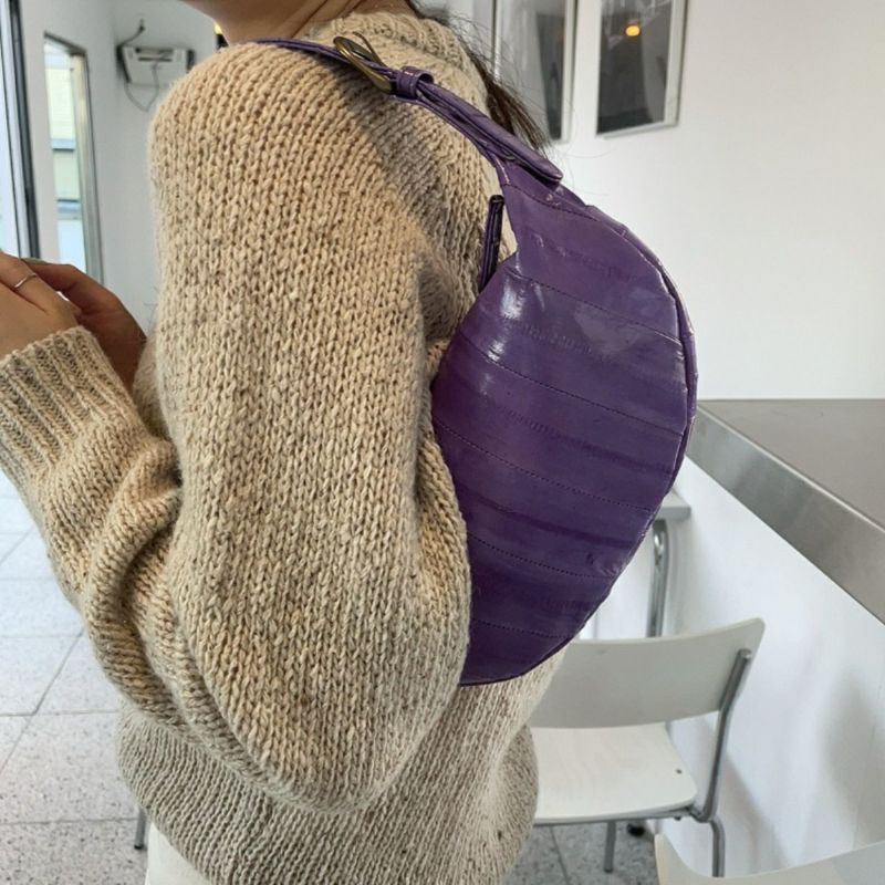 クロワッサンのような可愛いシェイプがポイントのバッグです。