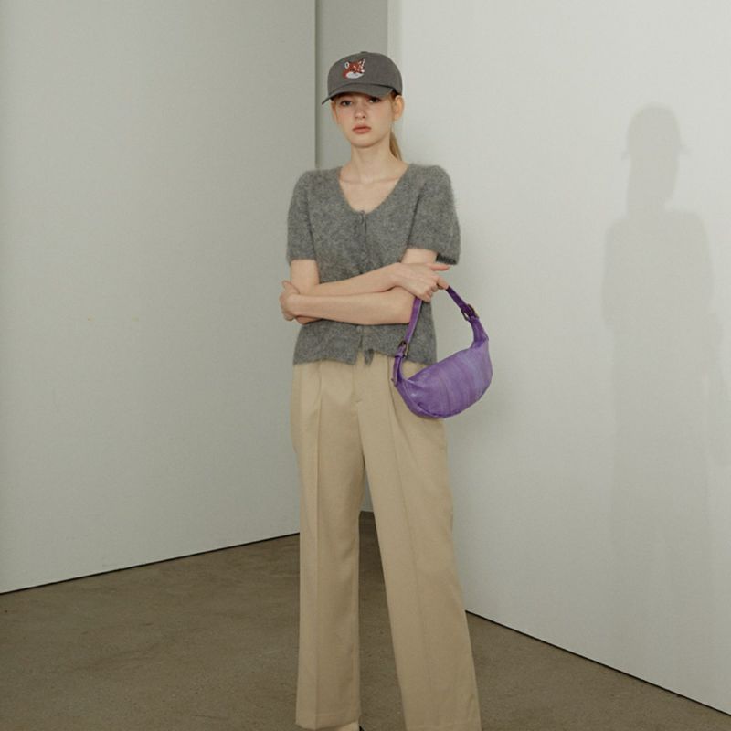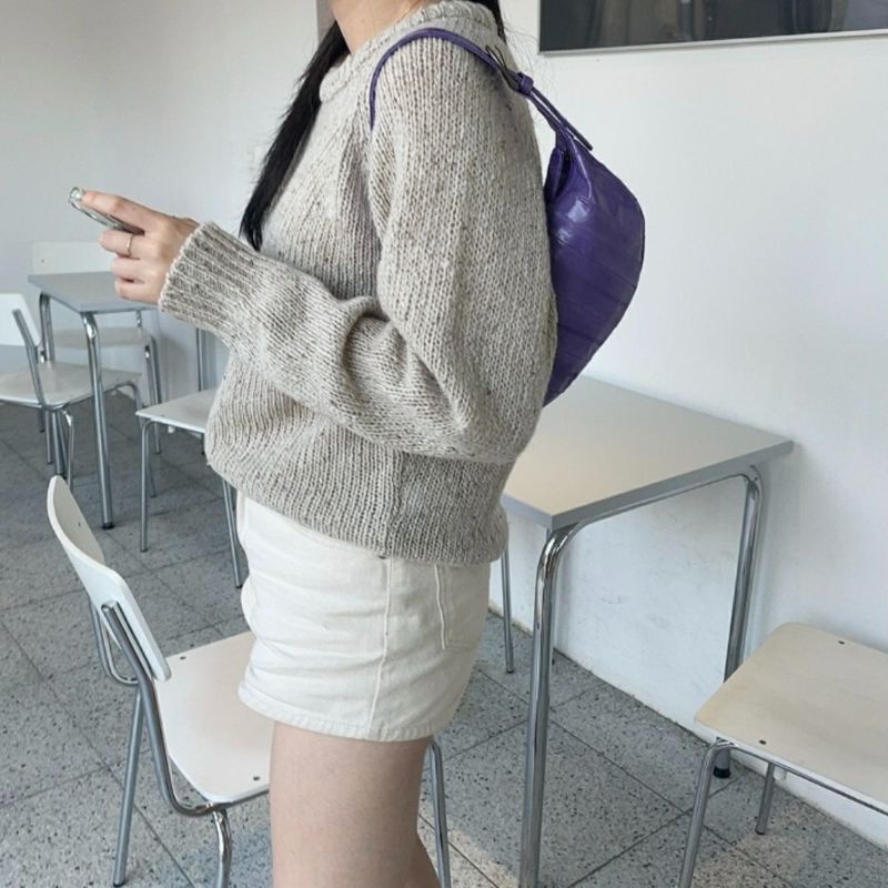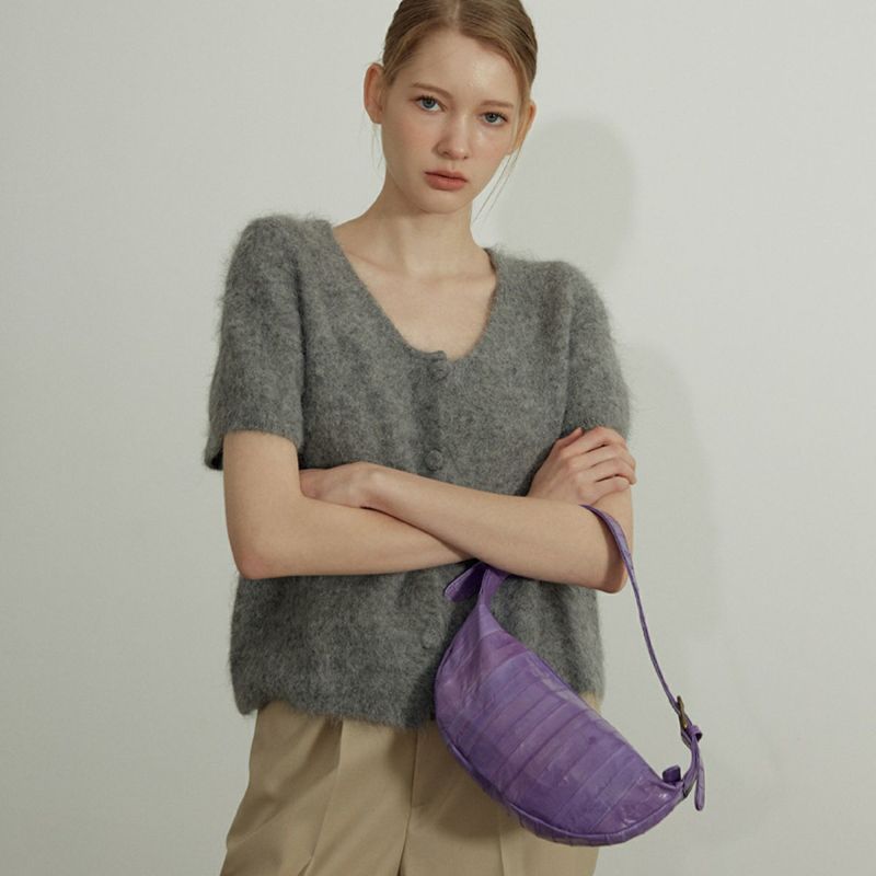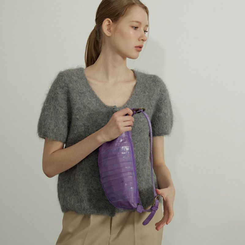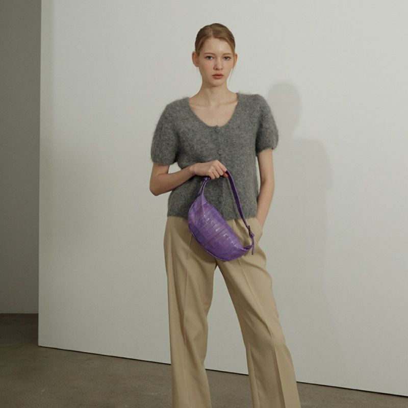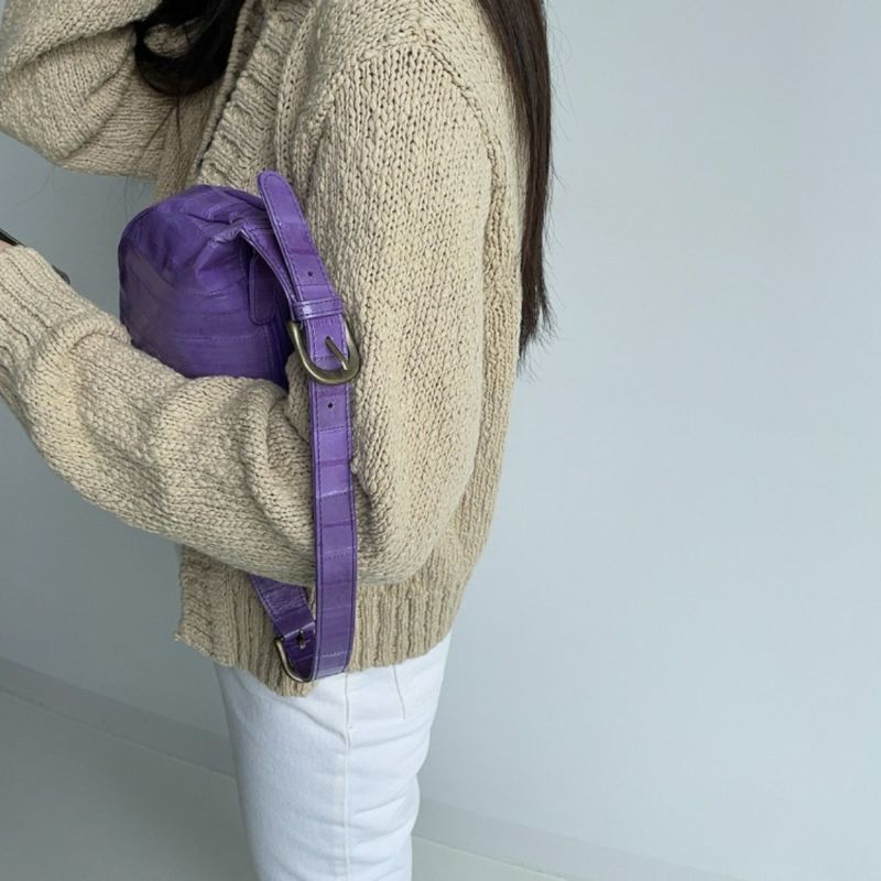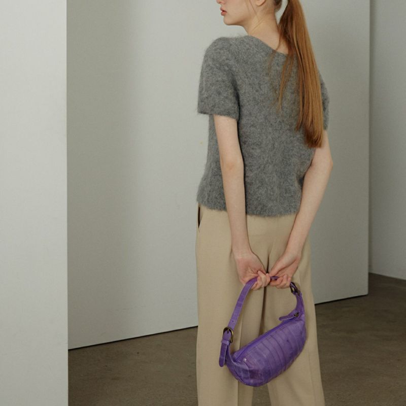 クロワッサンのような可愛いシェイプがポイントのバッグです。