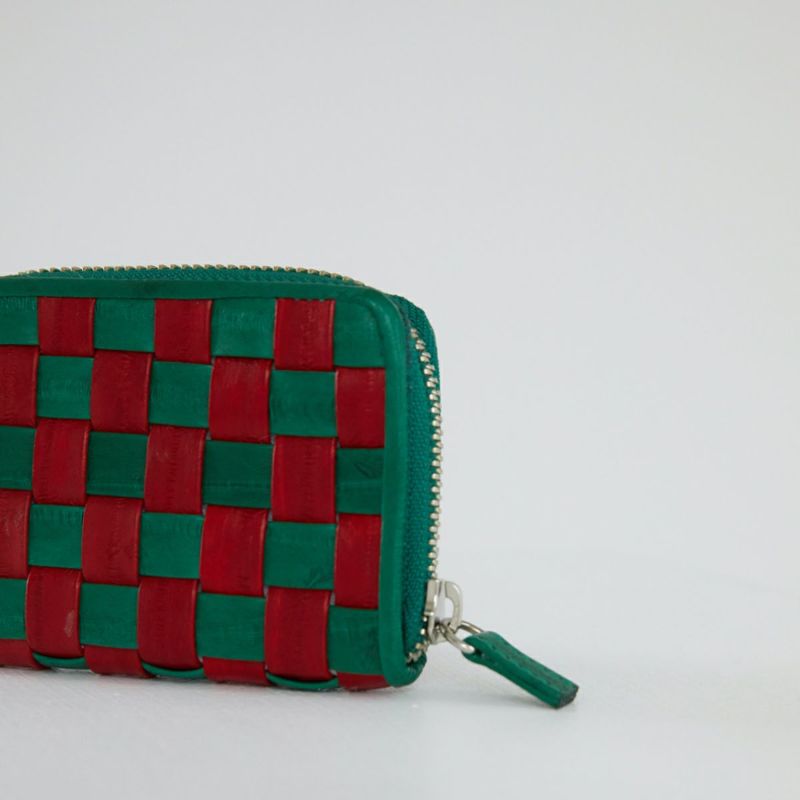 ひとつひとつ手作業で作られたブロックチェックがポイントのカードウォレットです。
