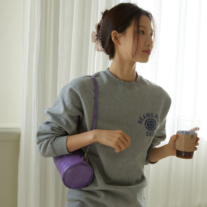 円筒形が可愛いショルダーバッグ。側面中央のメタルプレートロゴがポイントです。