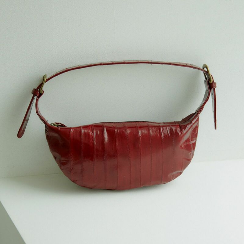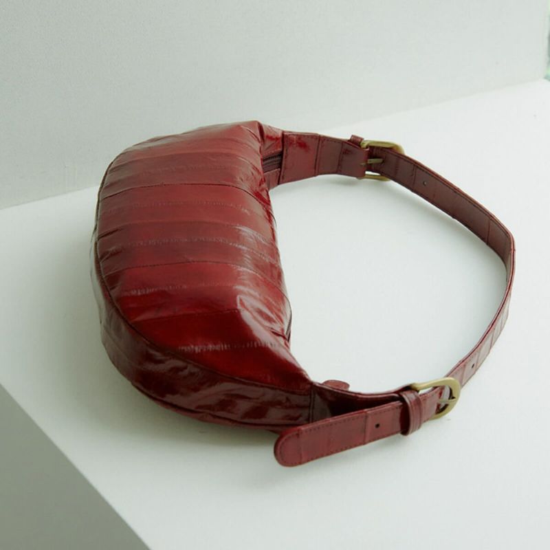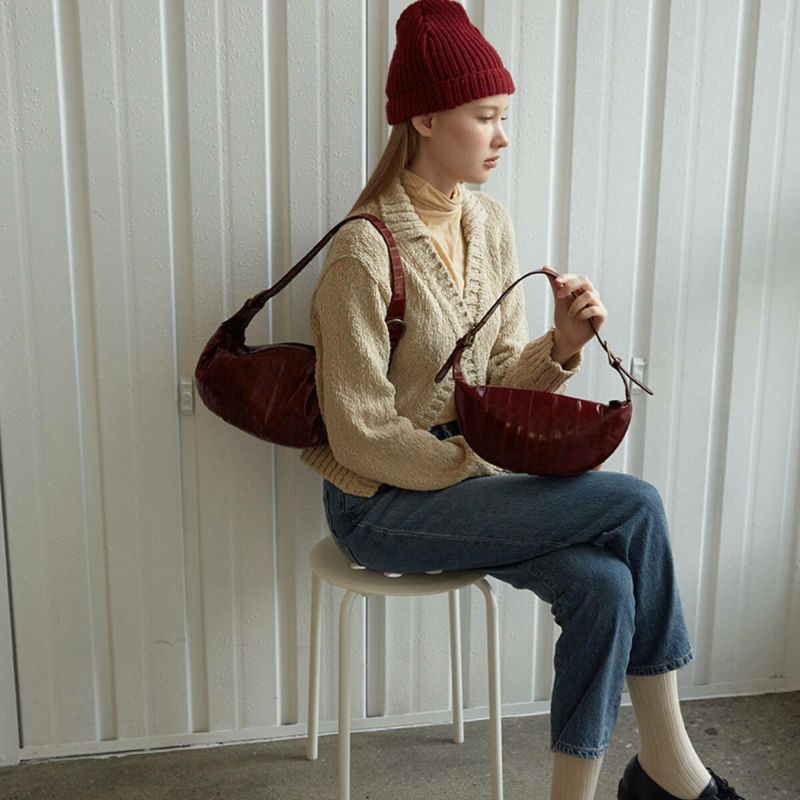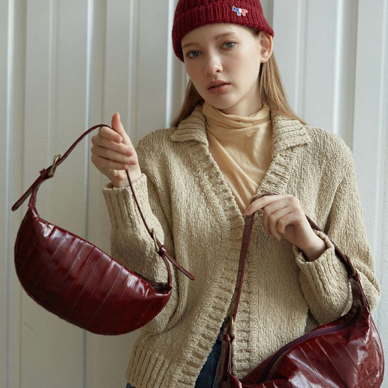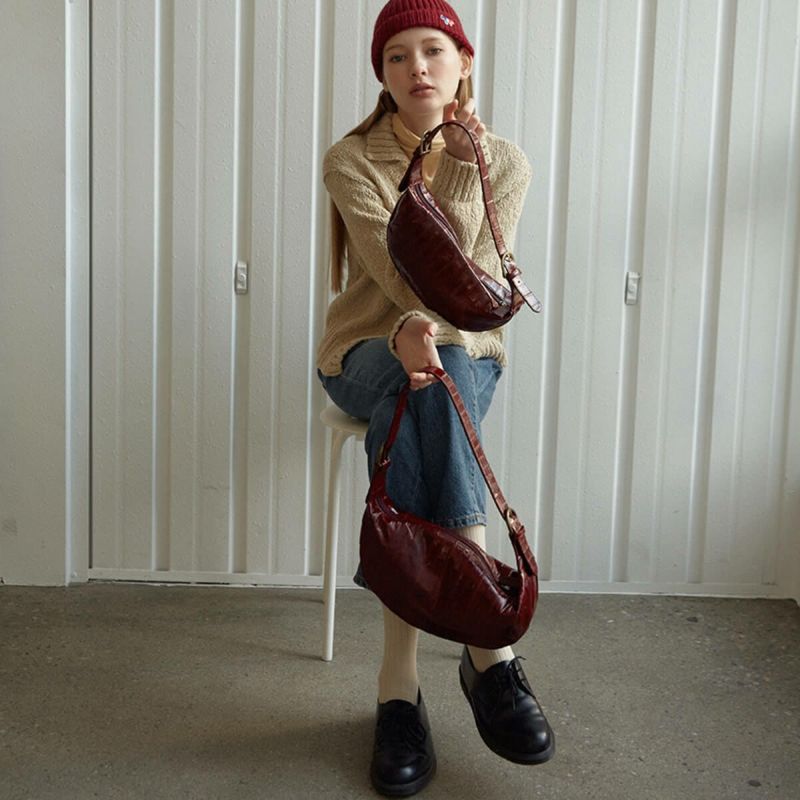 クロワッサンのような可愛いシェイプがポイントのバッグです。