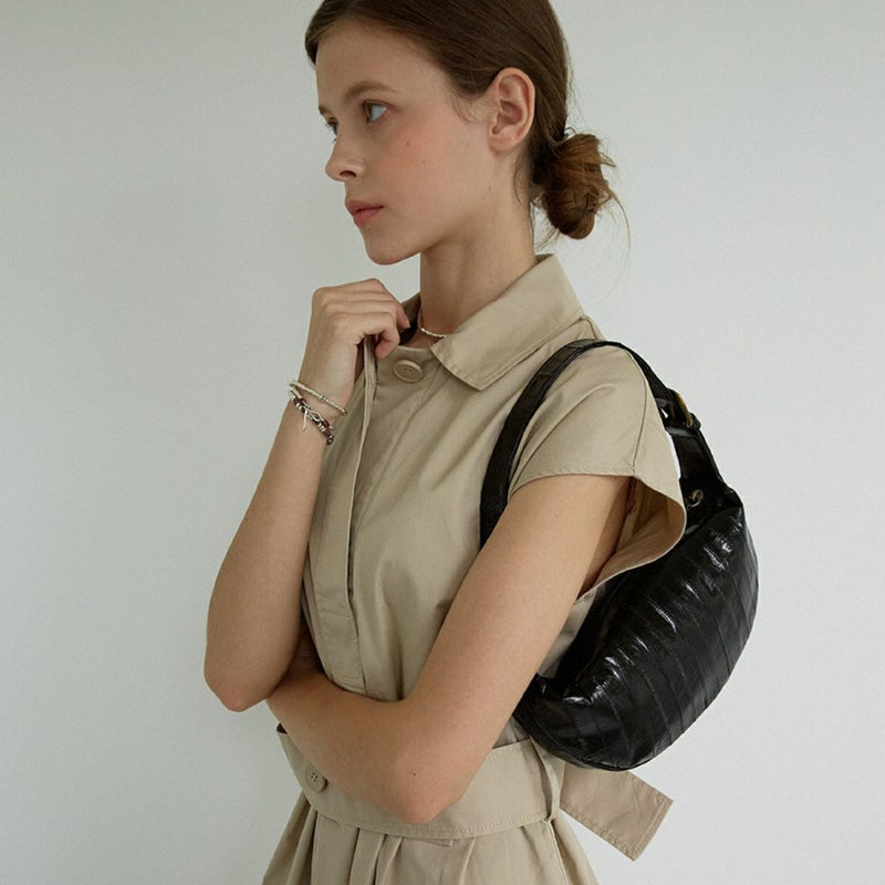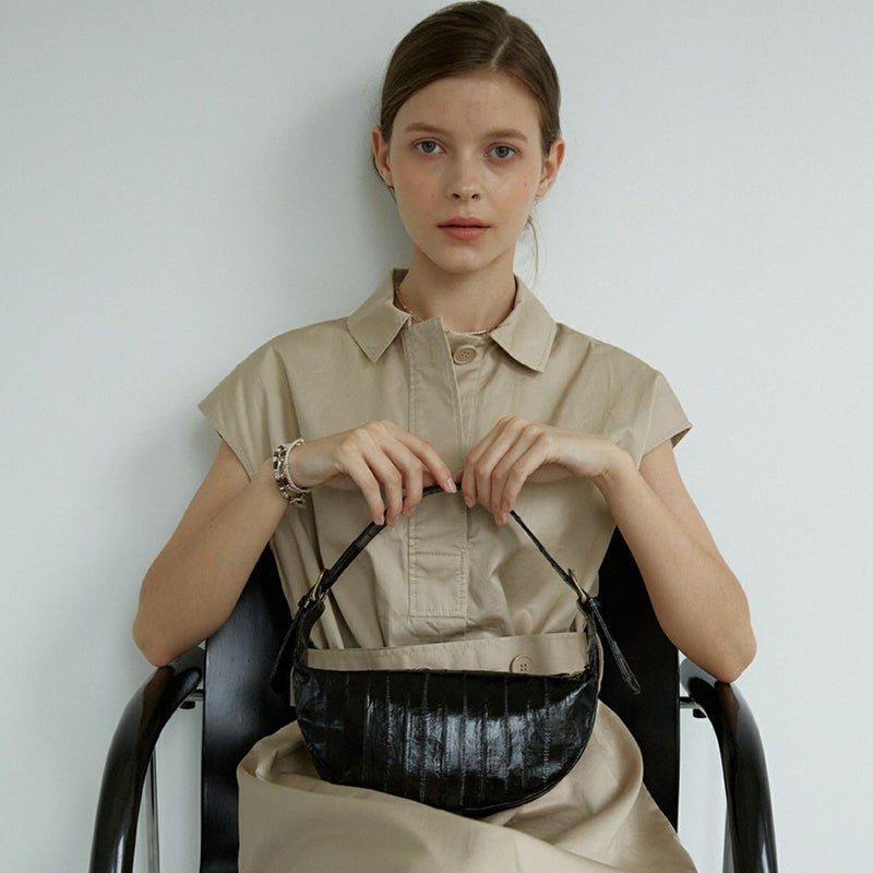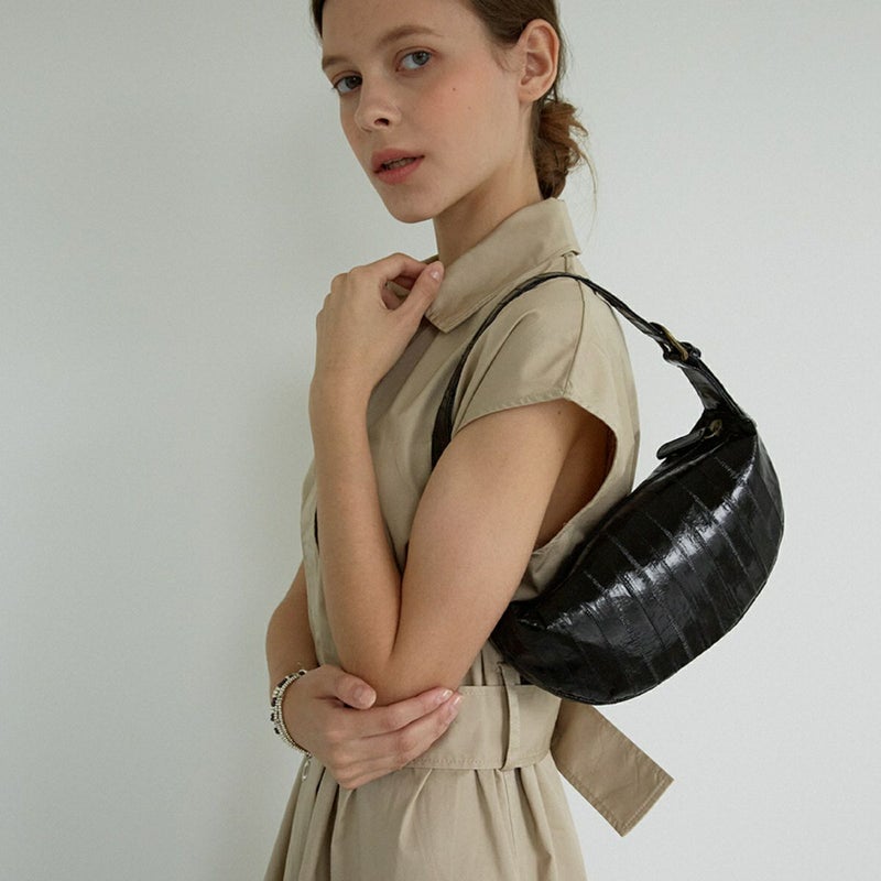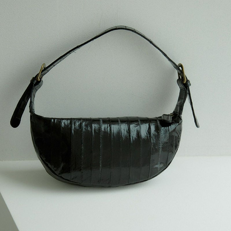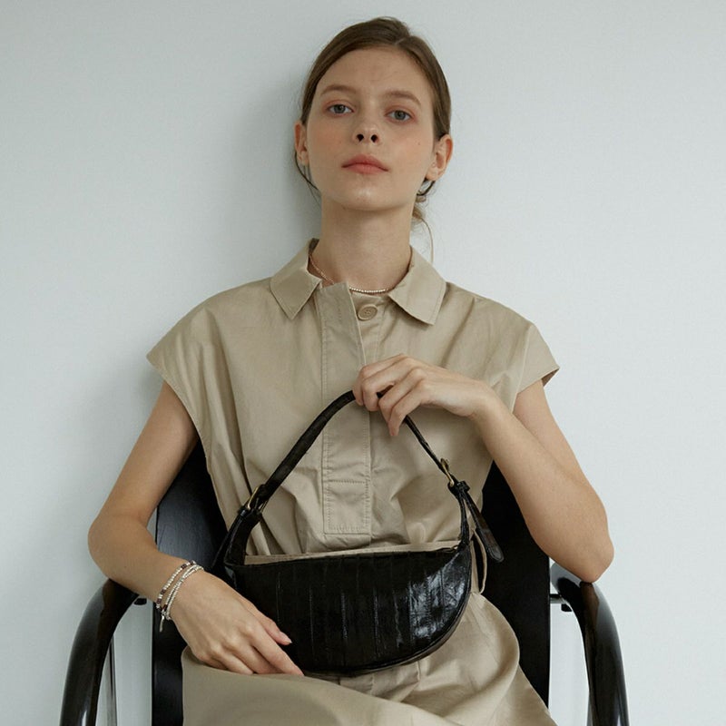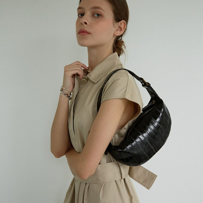 クロワッサンのような可愛いシェイプがポイントのバッグです。