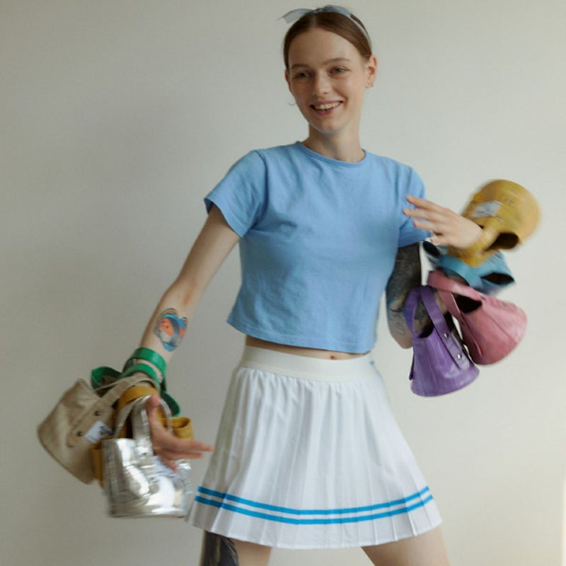 “ダブルクォーツ”はイールスキンのこうしたユニークな特性を生かし、鮮やかな色彩、軽い手触り、多様な用途に重点を置き、独創的で個性的なデザインを重視するブランドを追求しています。