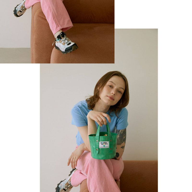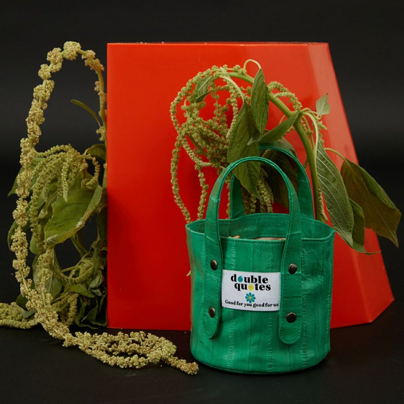“ダブルクォーツ”はイールスキンのこうしたユニークな特性を生かし、鮮やかな色彩、軽い手触り、多様な用途に重点を置き、独創的で個性的なデザインを重視するブランドを追求しています。