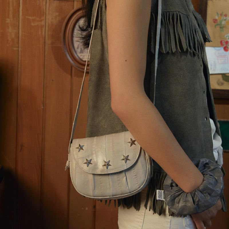 星のメタルパーツが可愛いショルダーバッグです。バッグの開け閉めはマグネットで簡単に。
