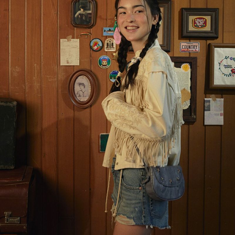 星のメタルパーツが可愛いショルダーバッグです。バッグの開け閉めはマグネットで簡単に。