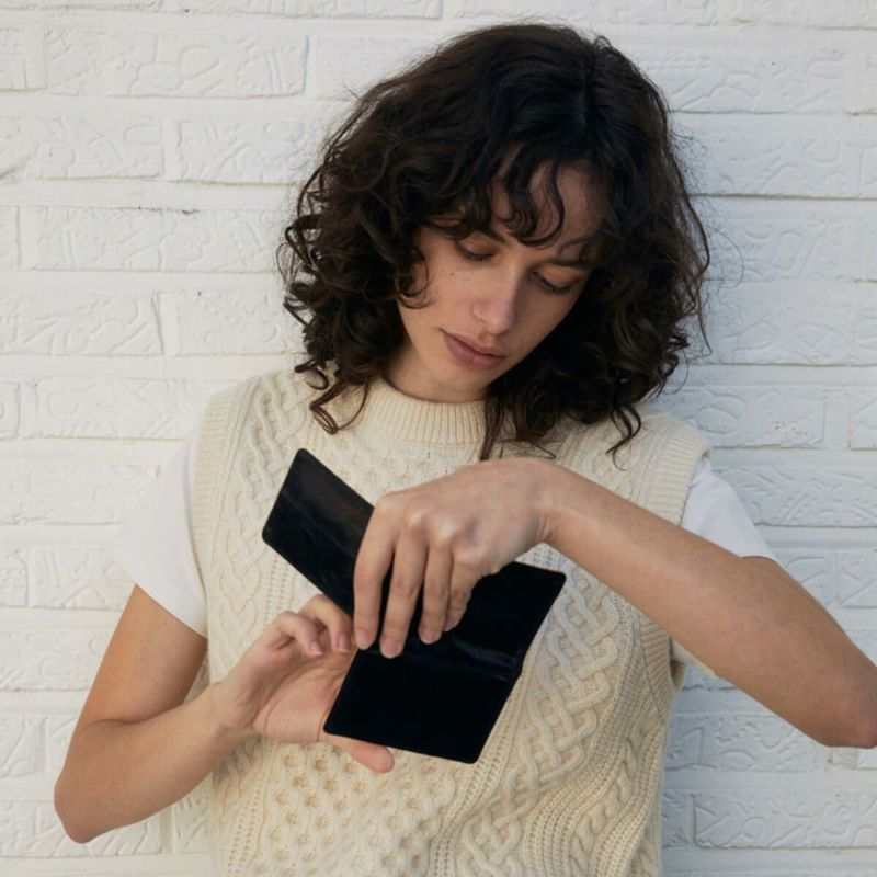イールスキンはそれぞれに生きた痕跡をもっています。革の特性上、表面に傷やシワ、汚れやムラなどがございますが、自然の美しさをそのまま生かしています。水に濡れた場合、その部分が黒くなることがありますが、乾けば元の色味に戻ります。