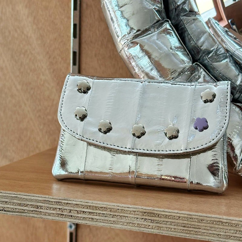 今シーズンのテーマは、「ちょっとした一日にも愛を込める」。ハート型のボタン、花モチーフのリベット、柔らかな柄のひとつひとつに、私たちのあたたかい想いを丁寧に込めました。特別なイベントがなくても、愛は静かに咲きます。そんな日常の中の小さなときめきを、ふわりと軽やかに表現したコレクションです。 ウナギ革のことをイールスキンと言います。一般的に流通している牛革や羊革と比べると、加工の難しさから主に高級品に使用されてきたため、馴染みがないと感じる方もいるかもしれません。この革は非常に柔らかな質感で、触り心地がとても心地いいのが特徴です。さらに、とても強い繊維構造でキズや摩耗に強く、牛革の約1.5倍の耐久性があります。長期間にわたって使用をしても、丈夫で美しさが持続します。韓国の食品産業の副産物として活用されるイールスキンは、ウナギの皮をリサイクルして作られるため、環境に優しい素材として注目を集めています。無駄を少なくするサスティナブルな選択肢です。イールスキンは他のレザーと異なり、1枚1枚が個性的な模様を持っているため、全く同じものが存在しません。それにより一点物の特別なアイテムとなります。“ダブルクォーツ”はイールスキンのこうしたユニークな特性を生かし、鮮やかな色彩、軽い手触り、多様な用途に重点を置き、独創的で個性的なデザインを重視するブランドを追求しています。