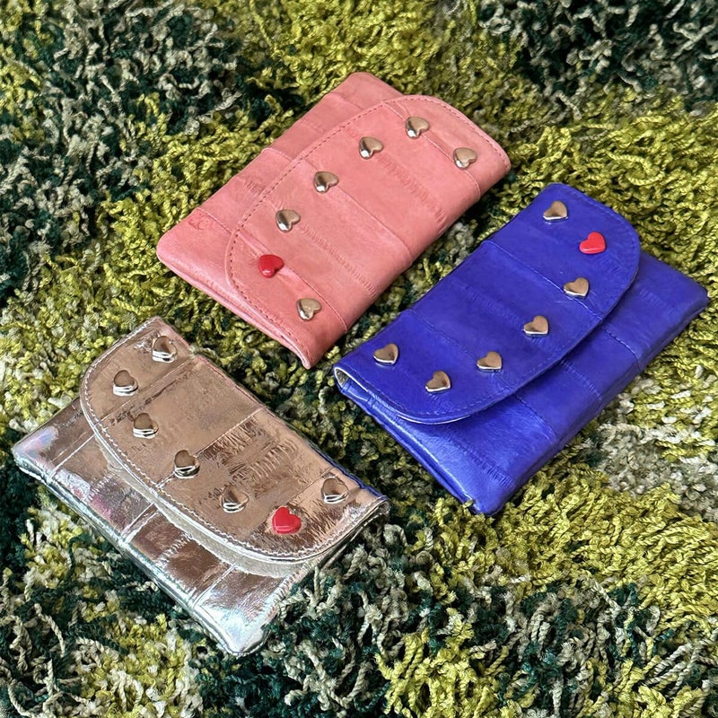 今シーズンのテーマは、「ちょっとした一日にも愛を込める」。ハート型のボタン、花モチーフのリベット、柔らかな柄のひとつひとつに、私たちのあたたかい想いを丁寧に込めました。特別なイベントがなくても、愛は静かに咲きます。そんな日常の中の小さなときめきを、ふわりと軽やかに表現したコレクションです。 ウナギ革のことをイールスキンと言います。一般的に流通している牛革や羊革と比べると、加工の難しさから主に高級品に使用されてきたため、馴染みがないと感じる方もいるかもしれません。この革は非常に柔らかな質感で、触り心地がとても心地いいのが特徴です。さらに、とても強い繊維構造でキズや摩耗に強く、牛革の約1.5倍の耐久性があります。長期間にわたって使用をしても、丈夫で美しさが持続します。韓国の食品産業の副産物として活用されるイールスキンは、ウナギの皮をリサイクルして作られるため、環境に優しい素材として注目を集めています。無駄を少なくするサスティナブルな選択肢です。イールスキンは他のレザーと異なり、1枚1枚が個性的な模様を持っているため、全く同じものが存在しません。それにより一点物の特別なアイテムとなります。“ダブルクォーツ”はイールスキンのこうしたユニークな特性を生かし、鮮やかな色彩、軽い手触り、多様な用途に重点を置き、独創的で個性的なデザインを重視するブランドを追求しています。