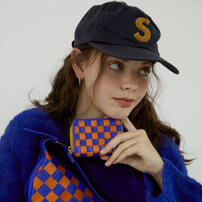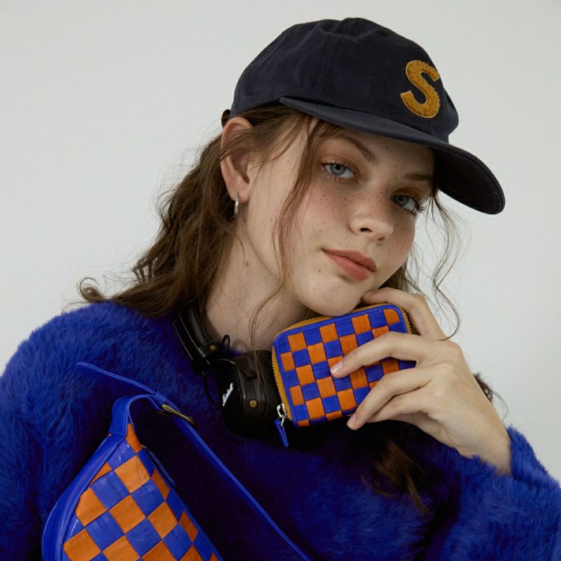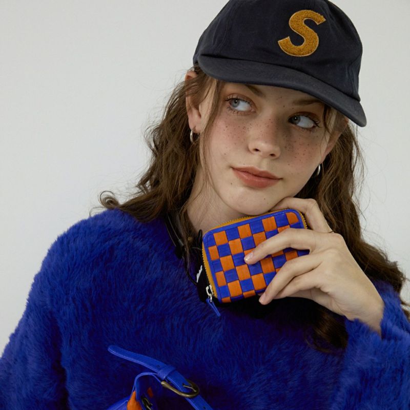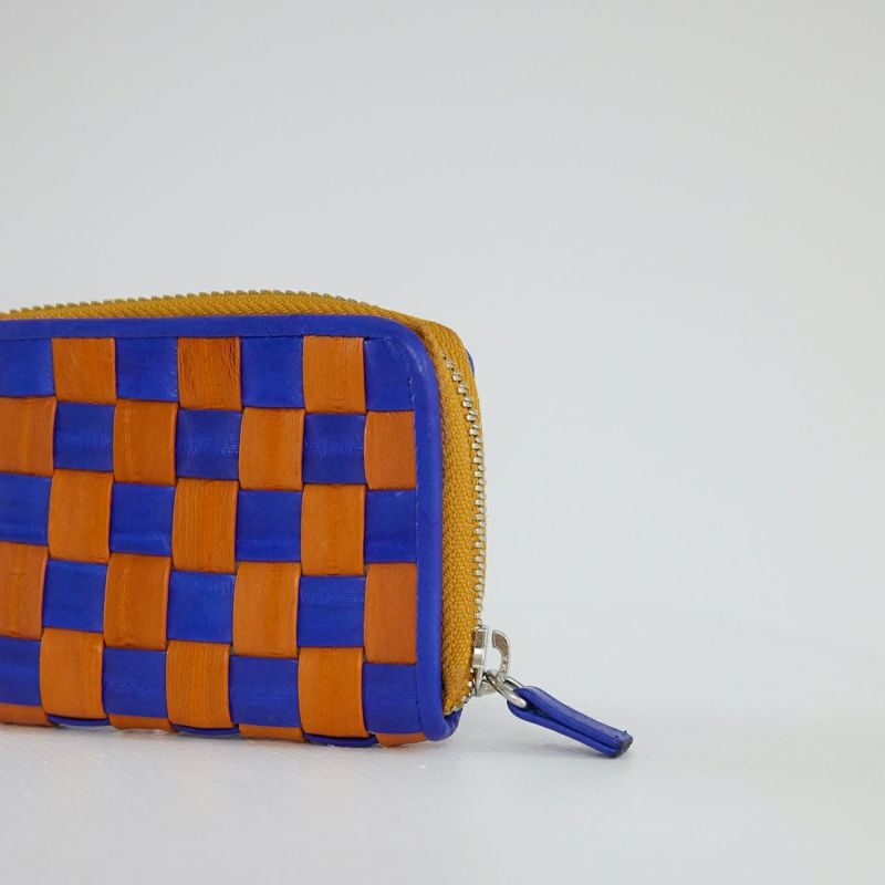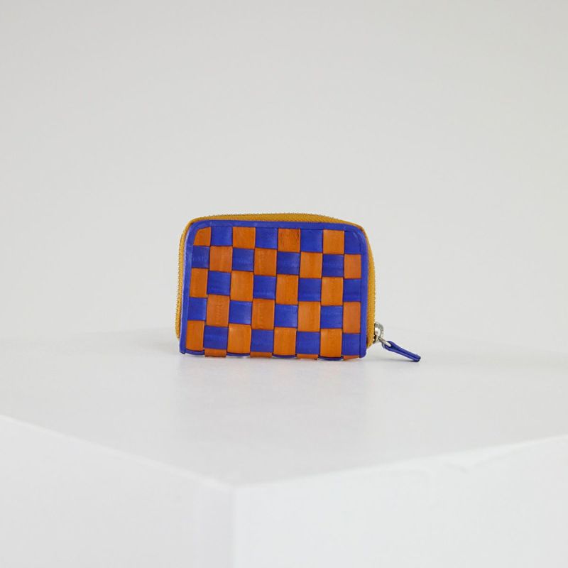 Checker board card wallet Blue/Orange