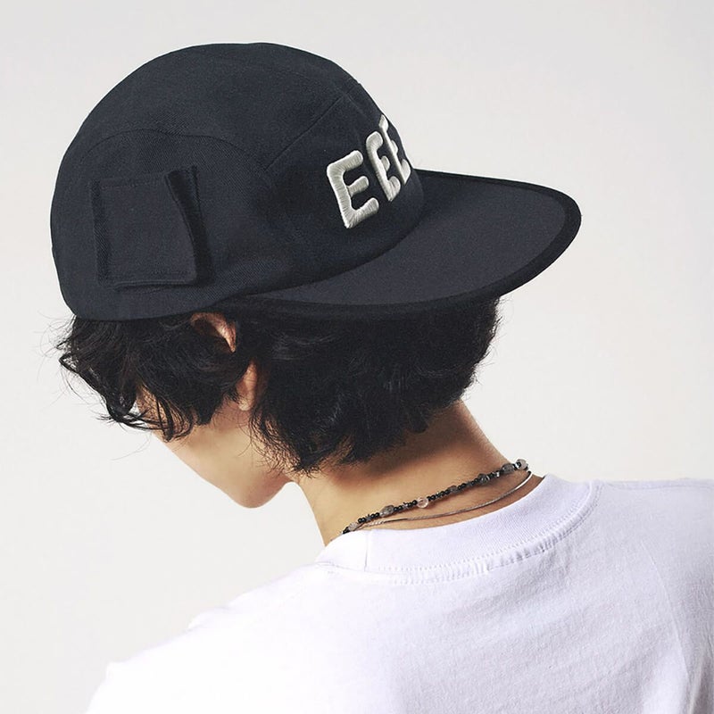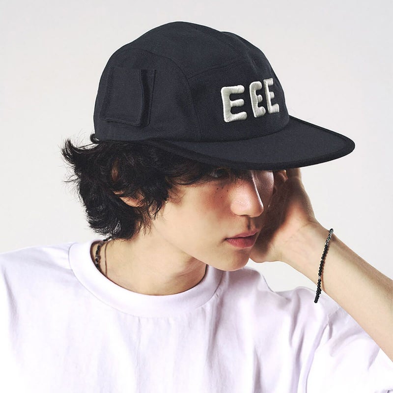 「ポケットキャンプキャップ」は、右サイドに配されたポケットディテールが特徴的で、小物の収納が可能。フロントにはインパクトあるEEEレタリングを大胆にデザインした、目を引くキャップです。