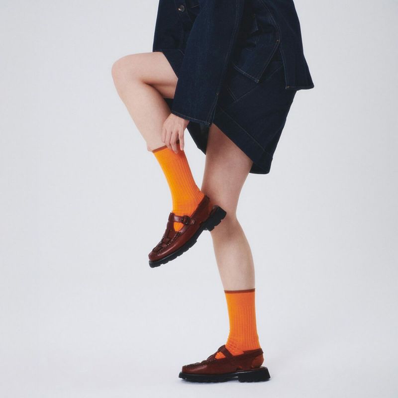 足首のロゴ刺繍がポイントのソックス 高級コーマ糸で仕上げた、ロゴ刺繍がアクセントの丈夫で柔らかなソックス 足首部分に施されたロゴ刺繍が特徴的なこのソックス。高級コーマ糸を使用することで、耐久性と柔らかさを兼ね備え、快適な履き心地を提供します。