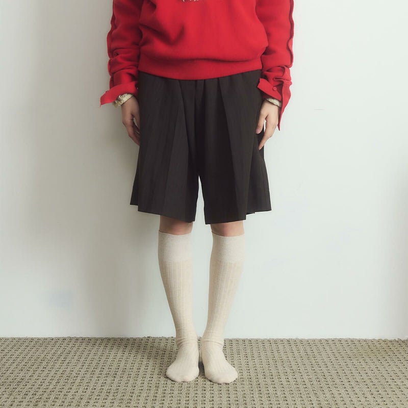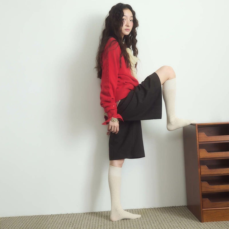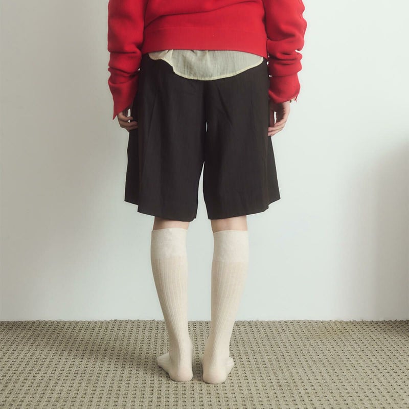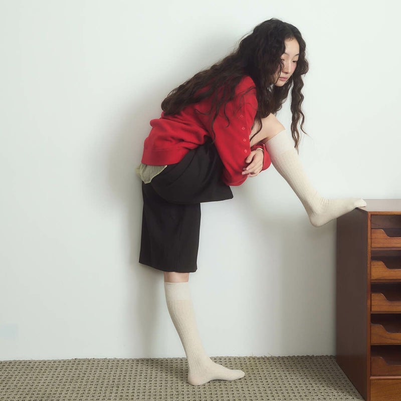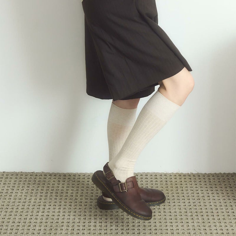 高級コーマ糸を使用して編み立てたリブ編みのニーハイソックスです。普段使いしやすいカラーと程よい丈感で、幅広いスタイリングに対応。ずり落ちにくく、快適な履き心地を提供します。