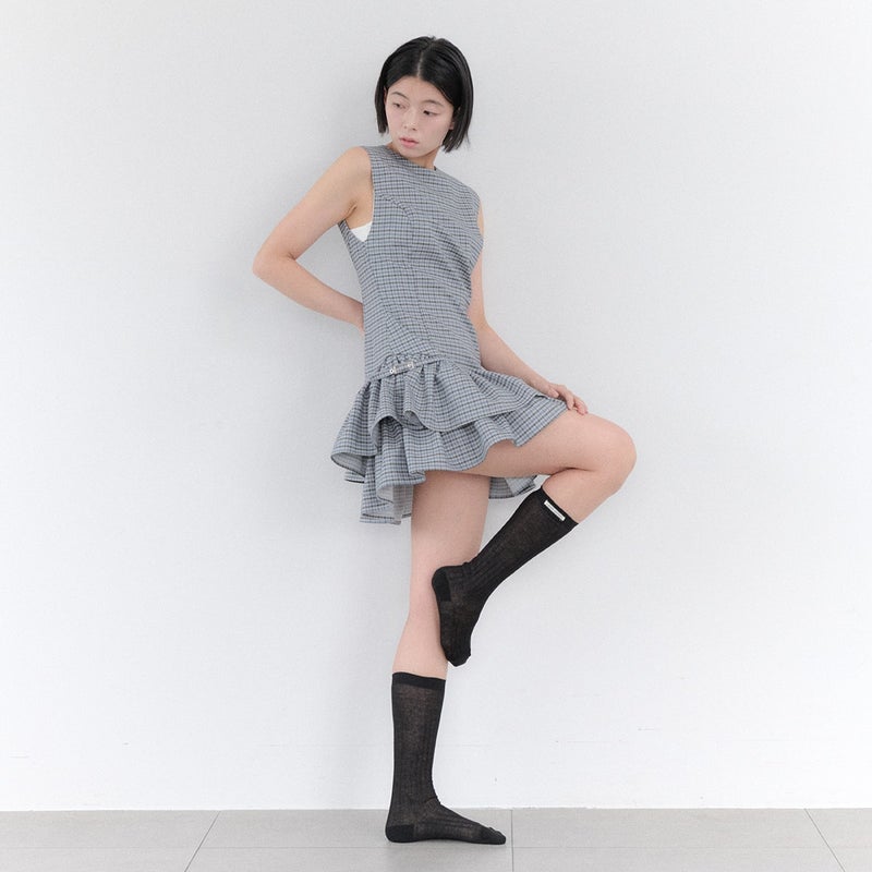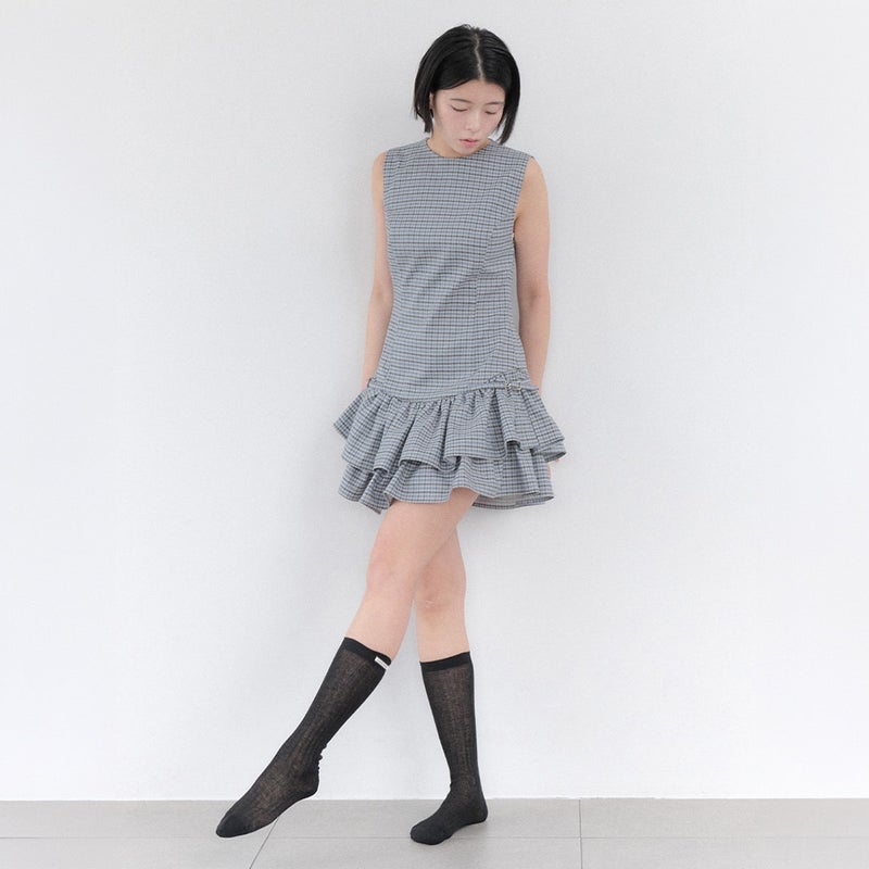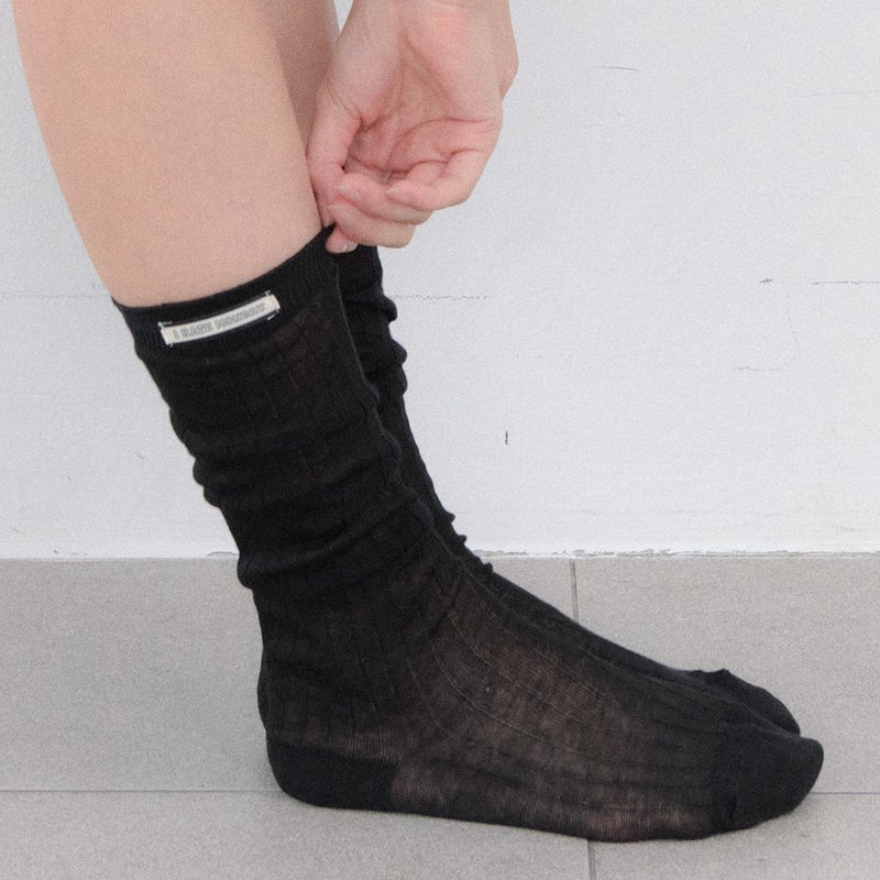 ゆったりとしたひざ下丈の薄手ソックス。クシュっと縮めても、伸ばして履いても可愛くアレンジできます。リブ部分のロゴタグがさりげないアクセントに。全5色展開。
