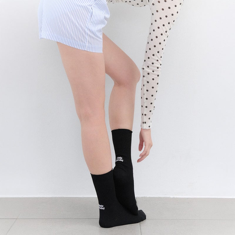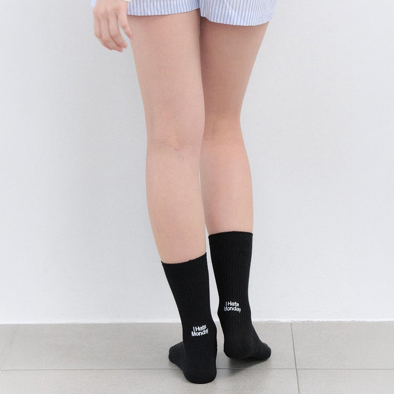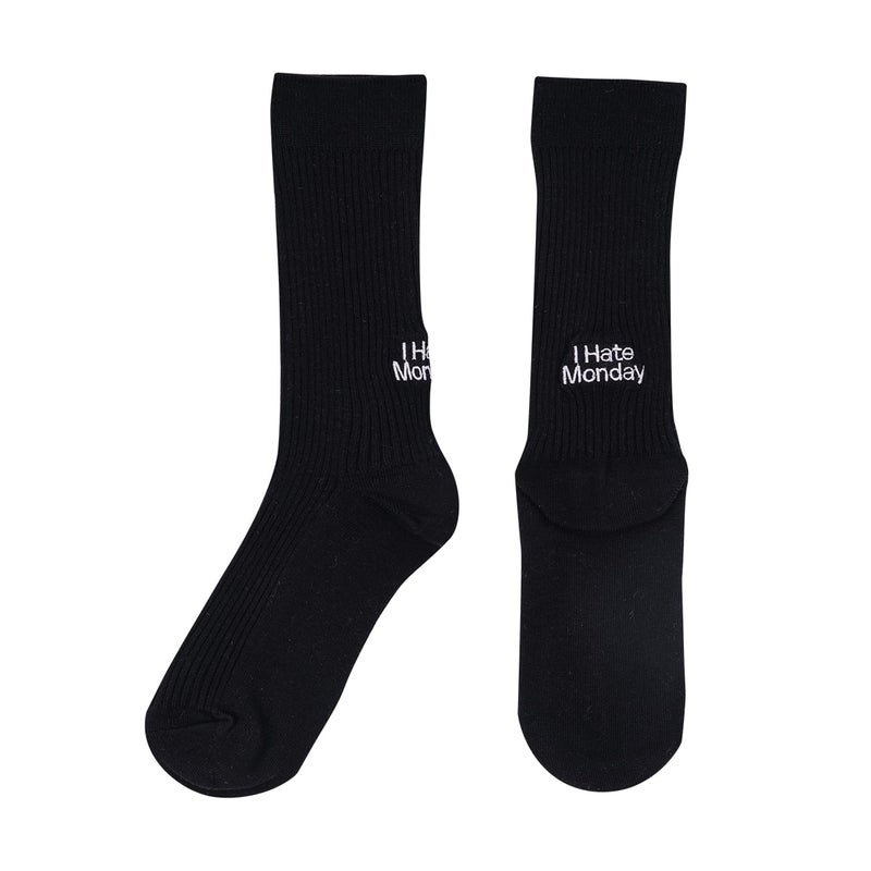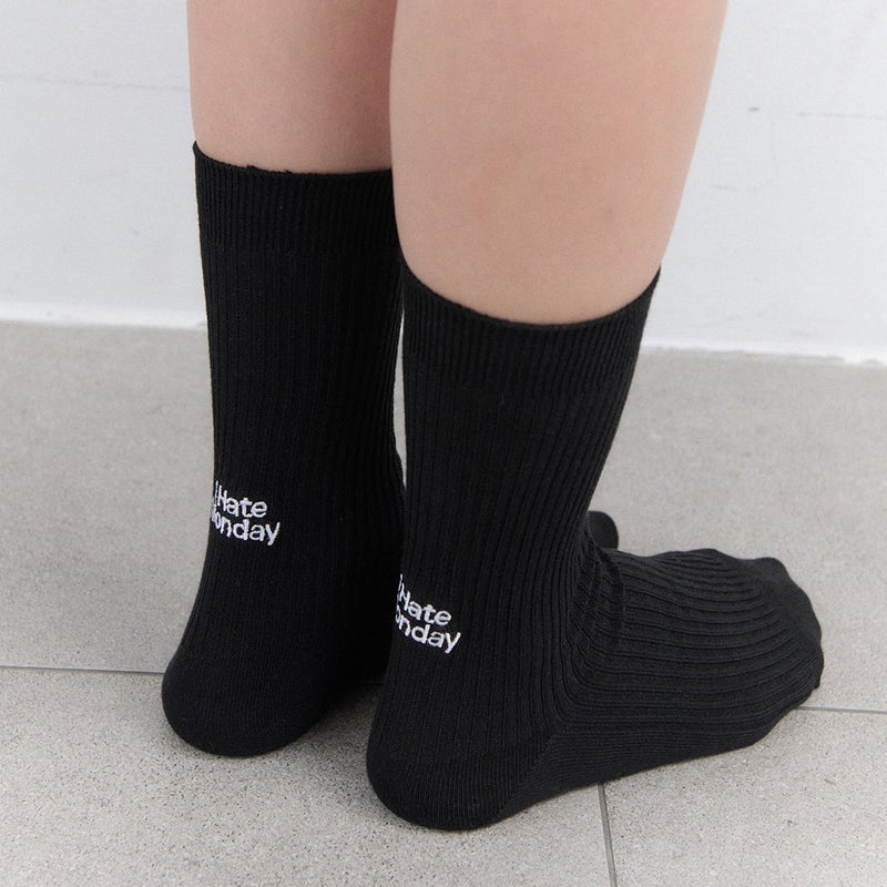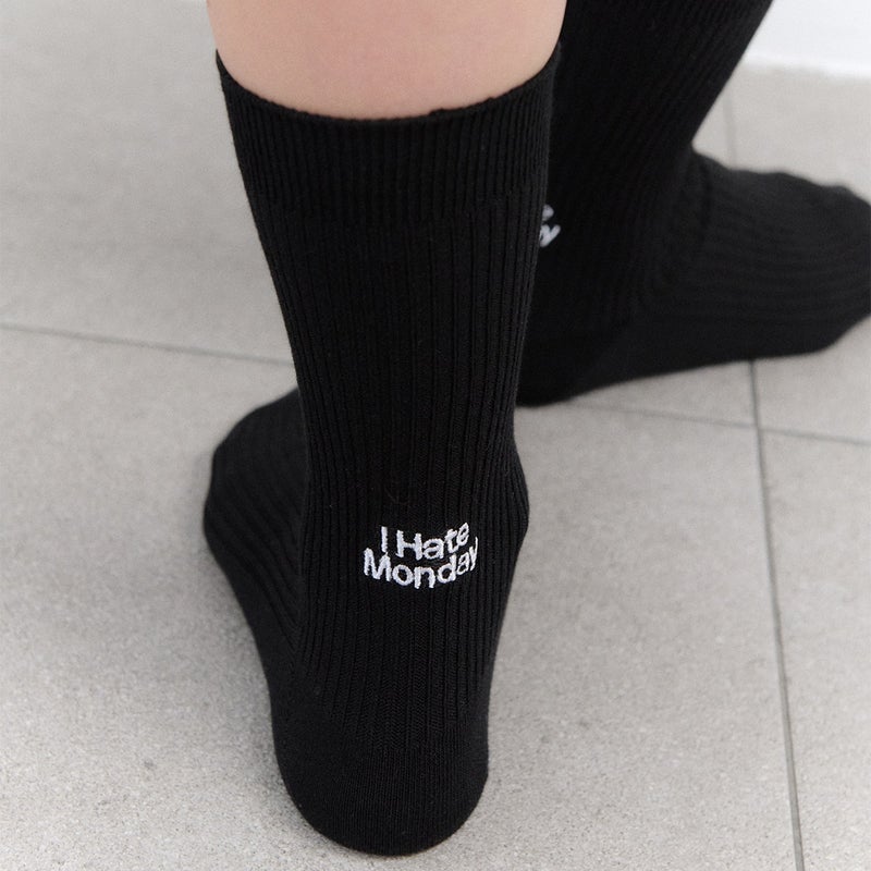 リブ編みのベーシックソックスに、バックロゴ刺繍をプラス。 少し大きめの「I Hate Monday」がコーディネートのアクセントになる一足です。