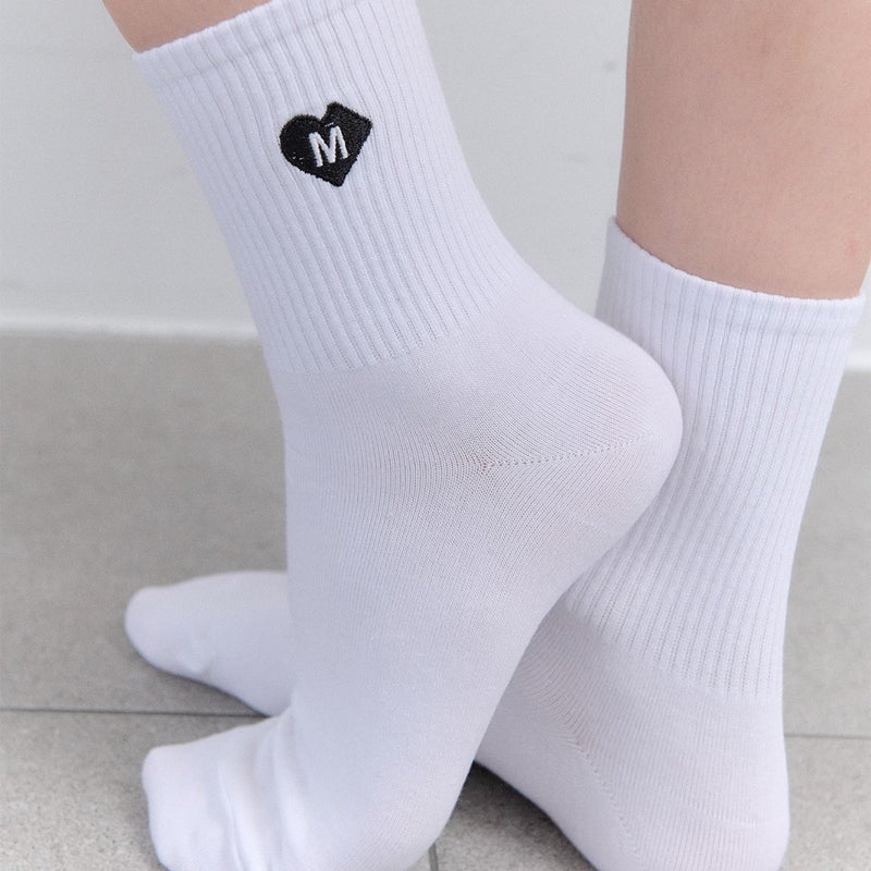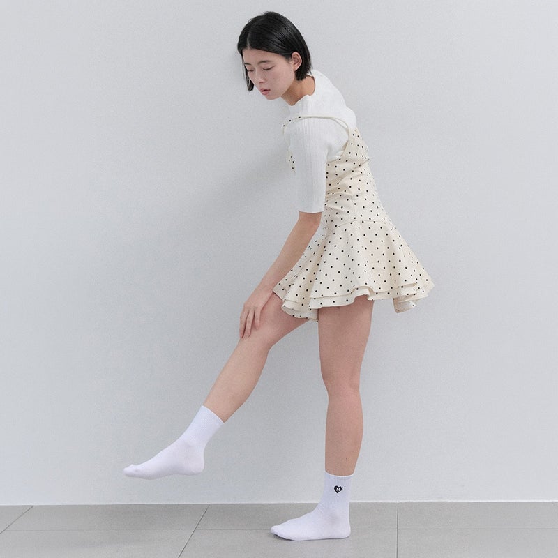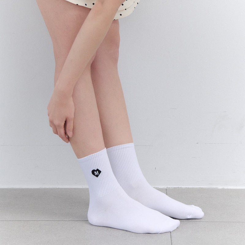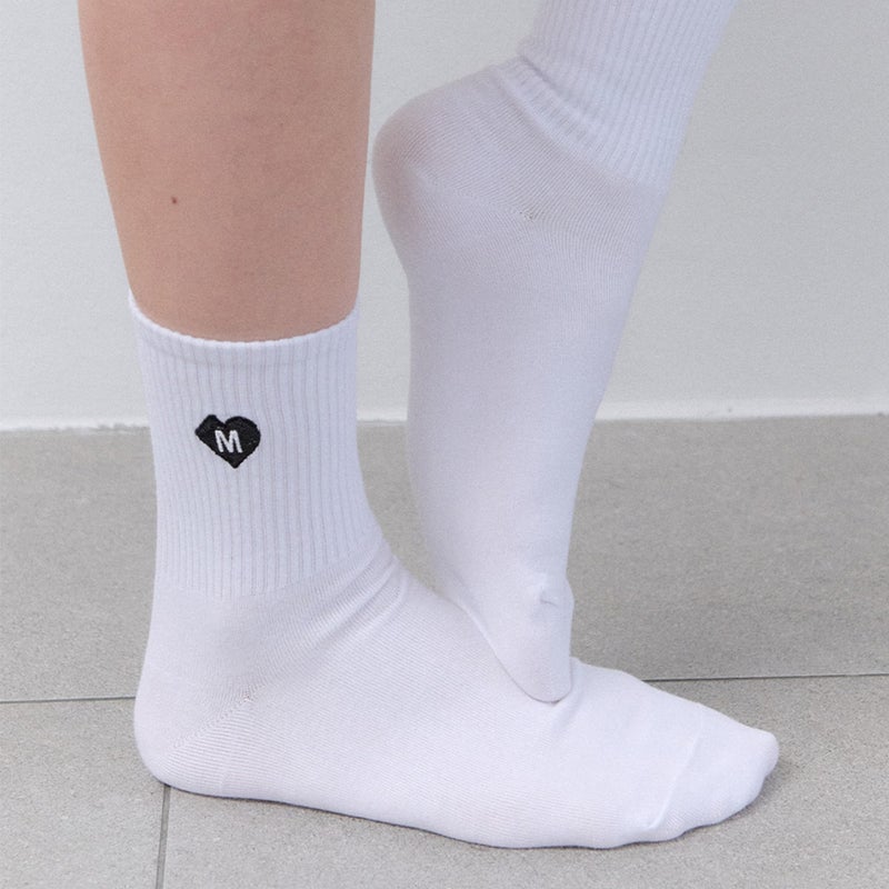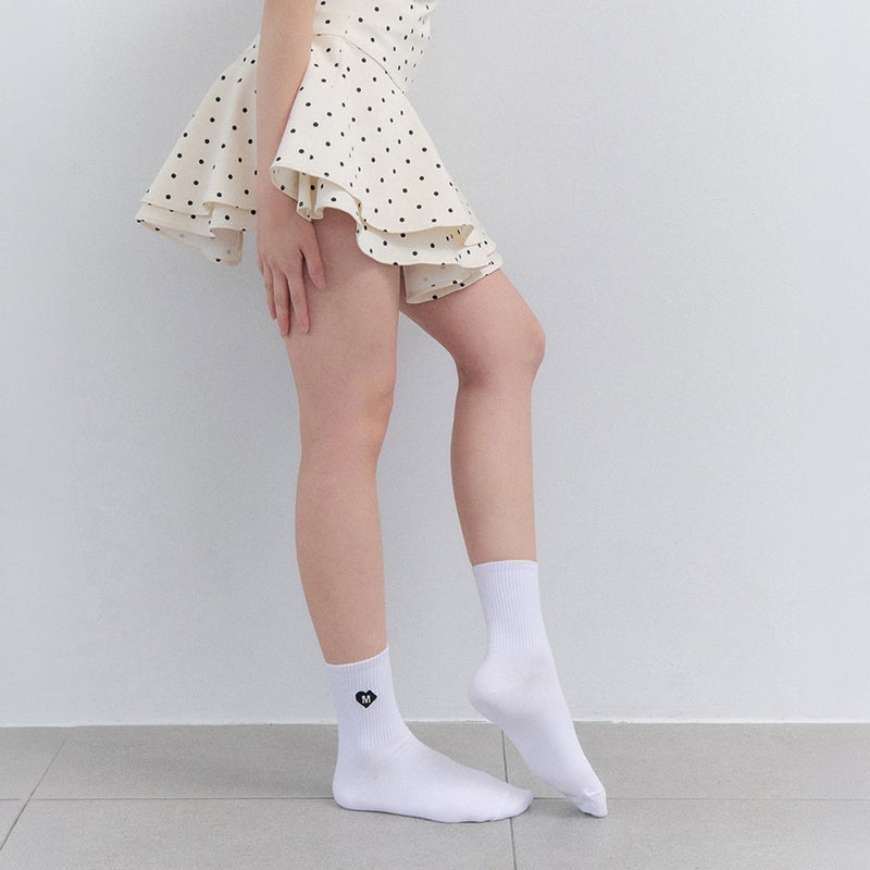 ワンポイントのハート刺繍がかわいらしいショートソックス。シンプルなデザインで、さりげないアクセントとしてコーディネートに取り入れやすい一足です。