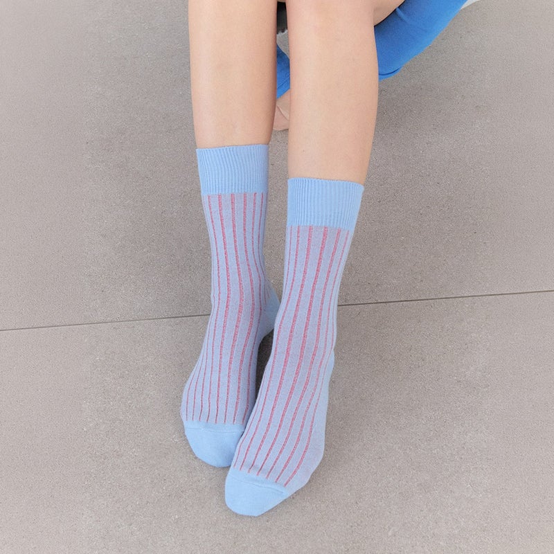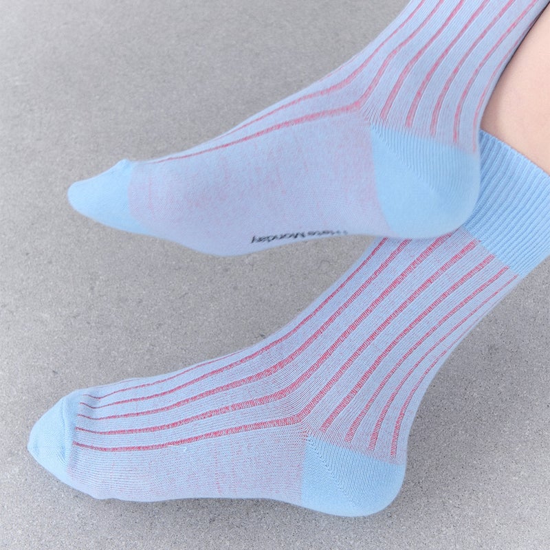 履いたときにリブの間からさりげなく裏地のカラーが現れる、配色・履き心地・デザインにこだわりを詰め込んだストライプソックスです。