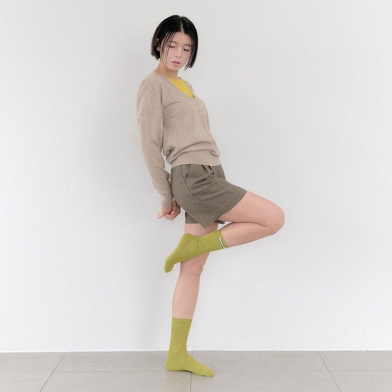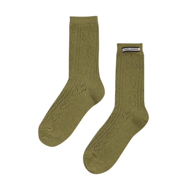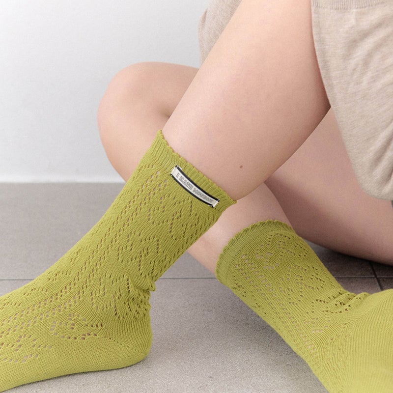 さりげない透かし編みがポイントのニットソックス。通気性のよいアイレット編みと柔らかなコットン素材で、快適な履き心地に仕上げました。シンプルながら表情のあるデザインで、コーディネートに軽やかなアクセントをプラスします。