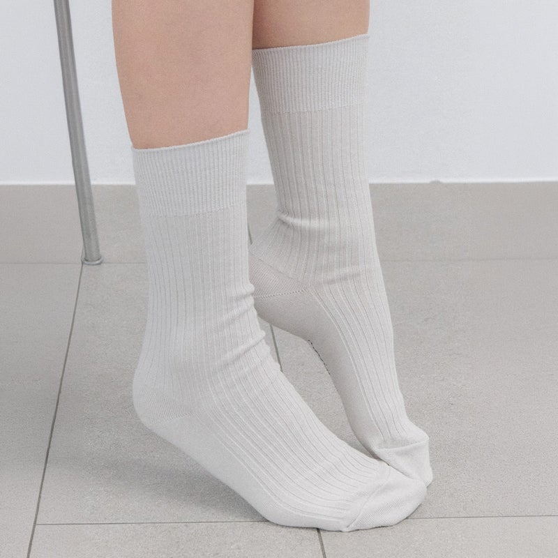 高級コーマ糸で編み立てたリブソックスです。デイリーに使いやすいカラーと程よい丈感で、幅広いスタイリングに対応可能。ずり落ちにくく、快適な履き心地を提供します。