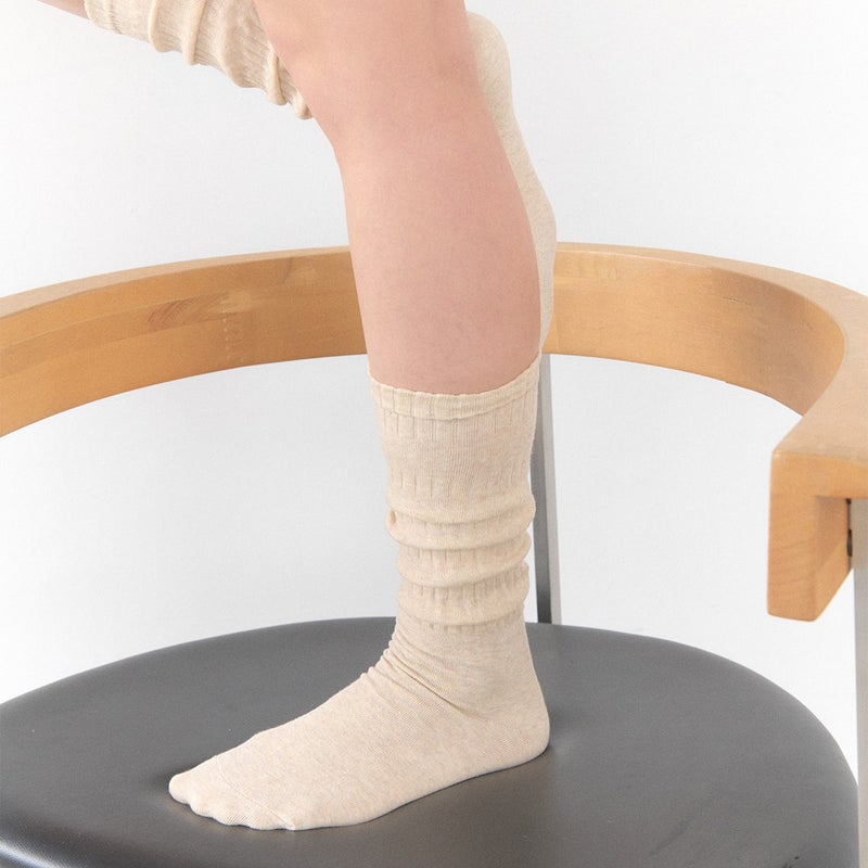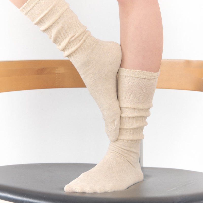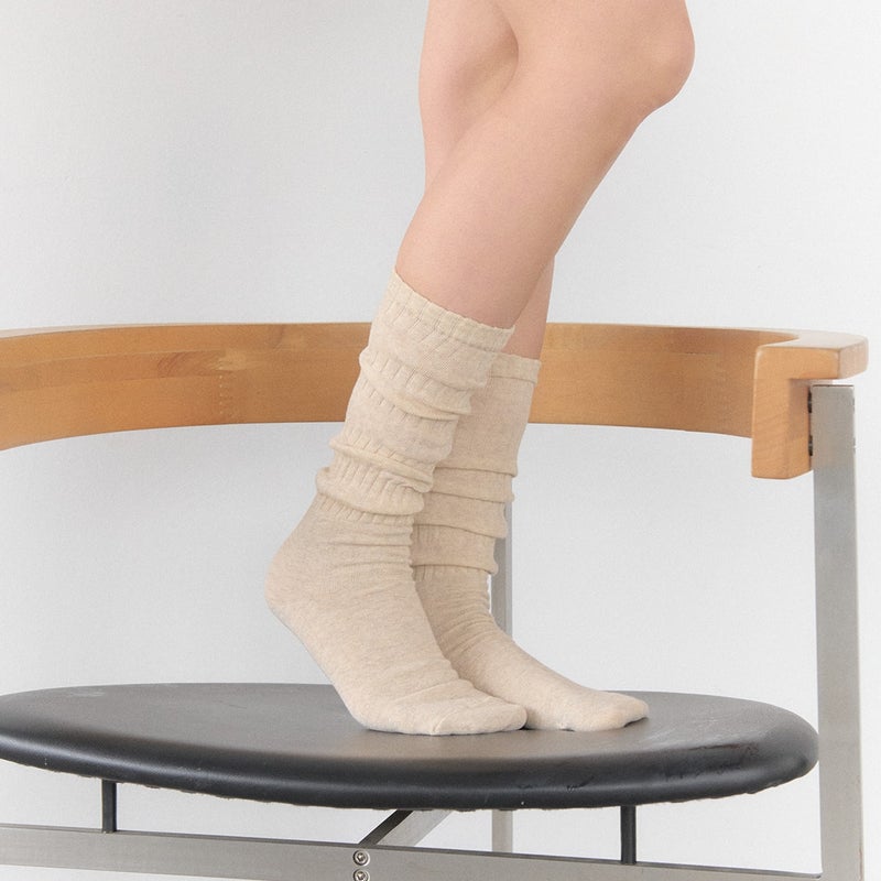 ツイスト編みがユニークな印象を与えてくれるソックスです。 少し長めに製作されており、お好みの長さで自然なシワ感やたるみを演出できます。