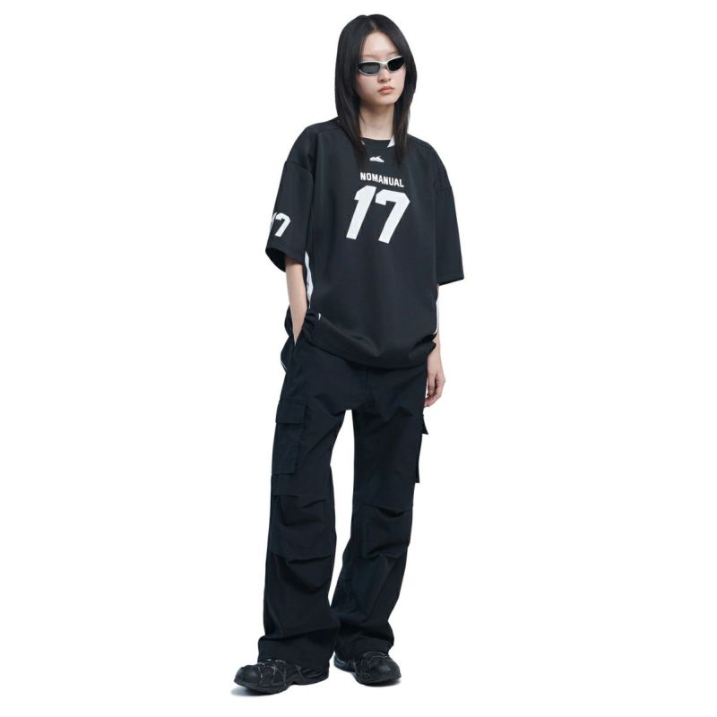背番号「17」が印象的なフットボールライクなゲームシャツ。 通気性に優れたポリエステル素材を使用し、両サイドにはメッシュパネルを配置することで、真夏でもさらっと快適な着心地を実現。 ゆったりとしたボックスシルエットで、一枚でもレイヤードでも映える万能トップス。