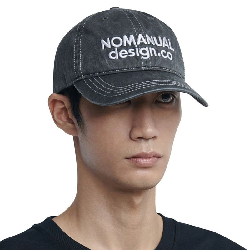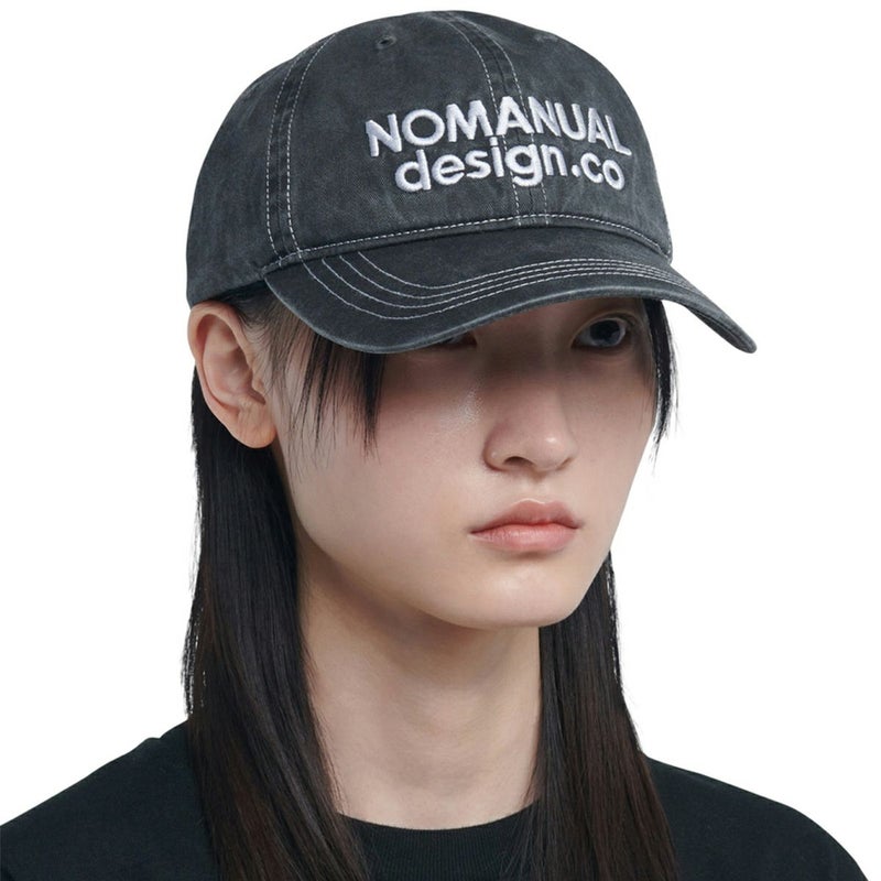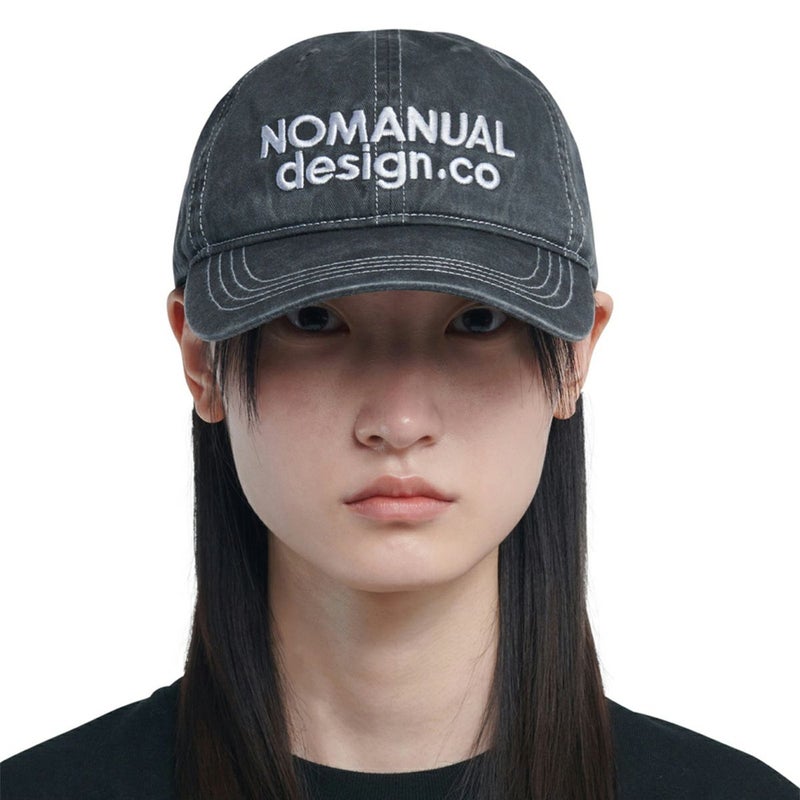 NOMANUAL design.co のロゴ刺繍がアクセント。 洗い加工で程よいヴィンテージ感があり、デイリーに使いやすい定番キャップです。