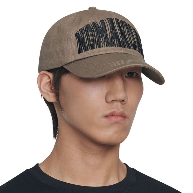 太めで存在感のあるグラフィックを使用したボールキャップ。単にボールドフォントを使っただけでなく、フォントを崩し、揺らぎのある効果を加えることで、独特な「揺れ感」のあるデザインに仕上げています。