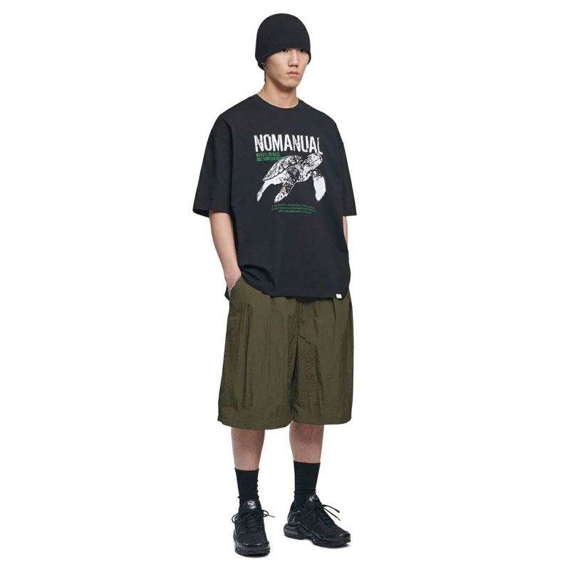 SHADE は「日陰」という意味です。真夏でも着用できるよう、薄手のナイロン生地で作られたパンツです。薄手のショーツ特有の不安定なフィット感を補うため、裾にドローストリングのディテールを追加しています。ドローストリングを絞ることで、パンプキンパンツ風のシルエットにも調整可能です。ウエストは開閉可能なバックルストラップ付きで、より着脱しやすくなっています。