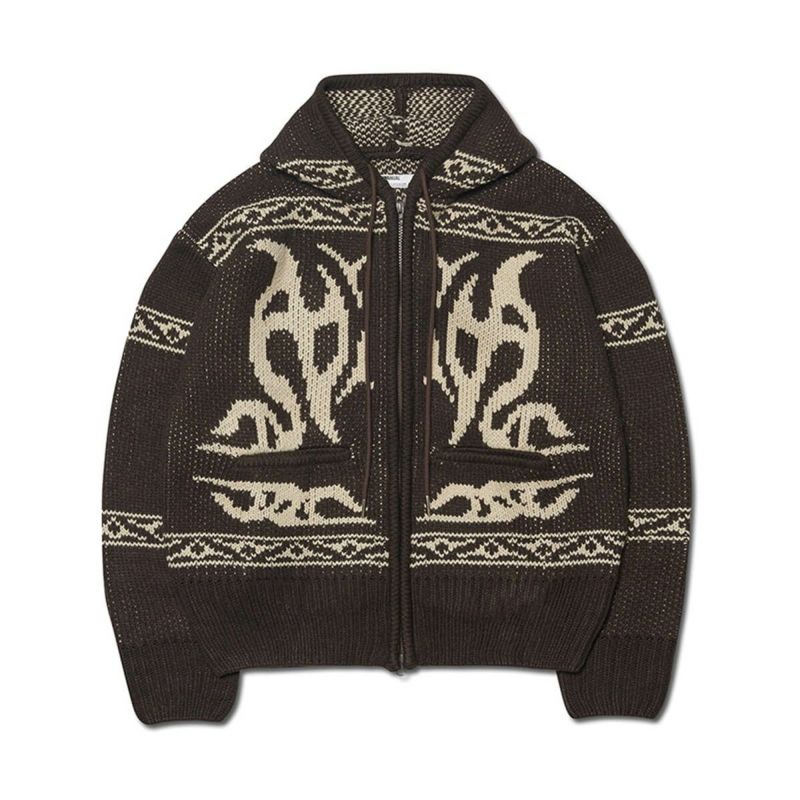 カウチンのムードをNOMANUALらしい感性で再解釈したニットジップアップ。 伝統的なカウチンニットのパターンを、NOMANUAL特有のグラフィックで織り上げ、モダンにアレンジ。 一般的なカウチンニットとは異なり、フードを加えることでよりデイリーでリラックス感のあるシルエットを演出しました。 24FWシーズンに向け、実用性を考慮してポケットディテールを追加。 2WAYジッパー仕様