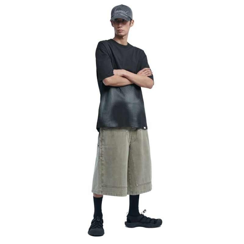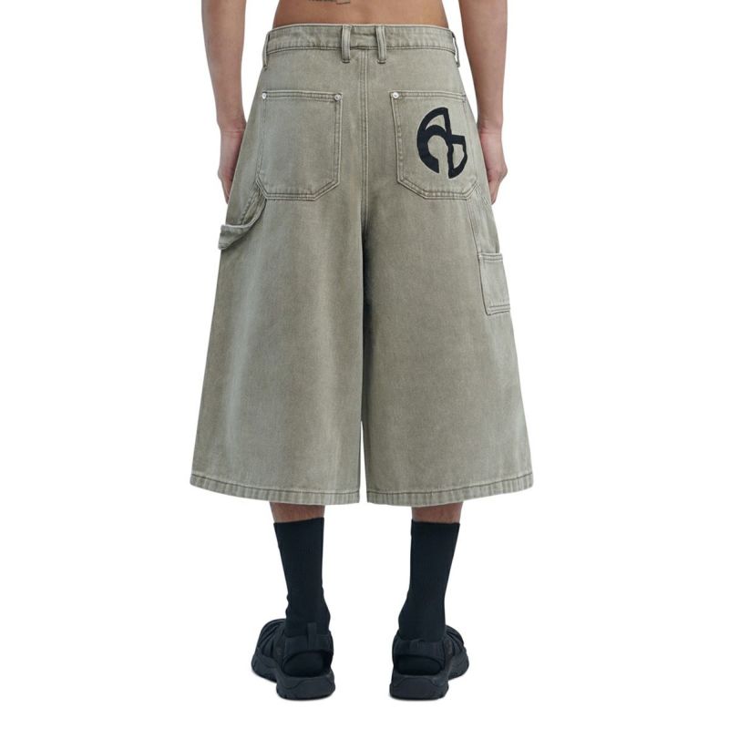 無骨さと抜け感が共存する、絶妙シルエットのバミューダパンツ。ヴィンテージライクなウォッシュ加工で、ラフながら計算された仕上がりに。 右バックポケットの大きなロゴ刺繍が、後ろ姿で差をつけるアクセント。ただのショーツじゃ物足りない人にこそハマる一本。