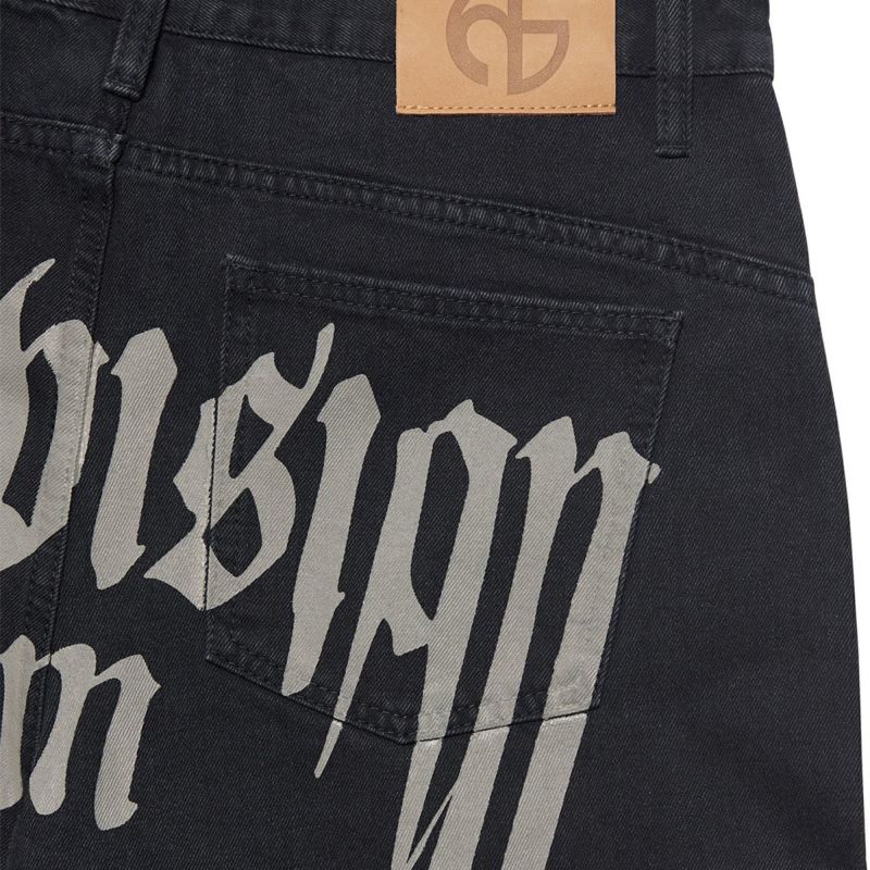 ラフなバックプリントが特徴のデニムパンツ。バルーンシルエットでゆったりとしたシルエットが魅力です。ストーンウォッシュとバイオウォッシュを施し、ラフで独特な質感を表現しています。