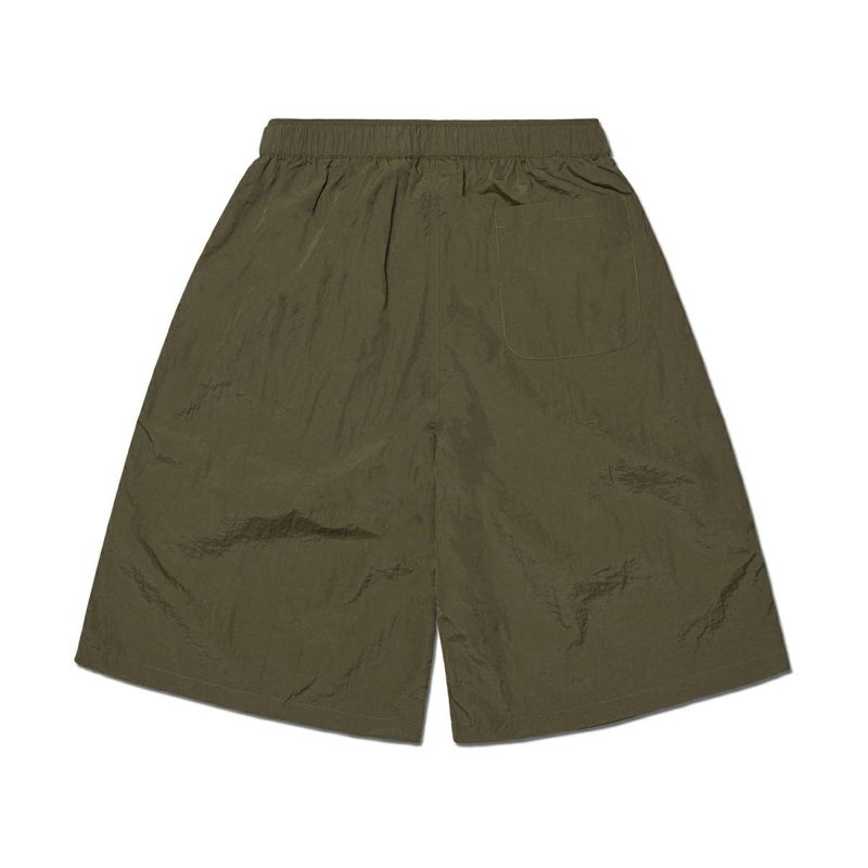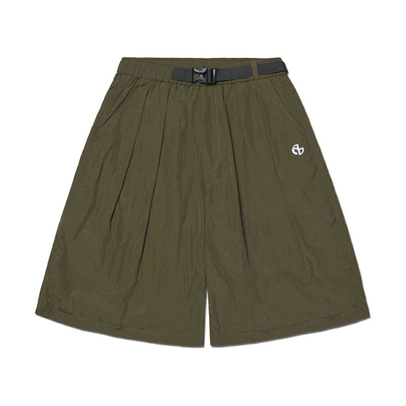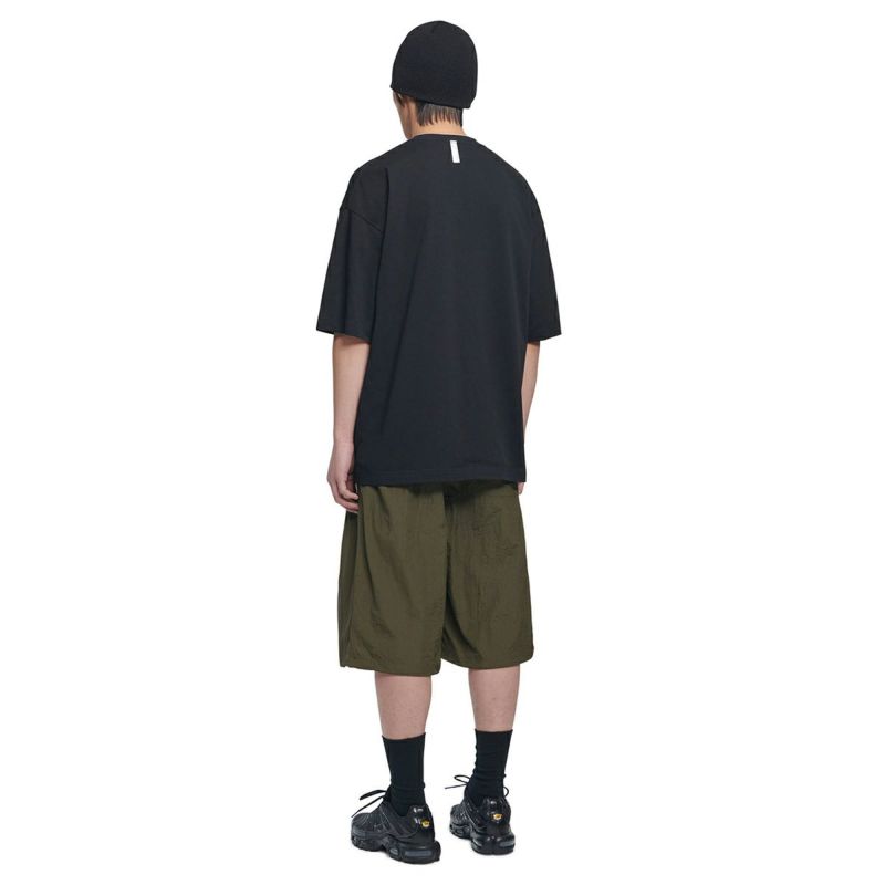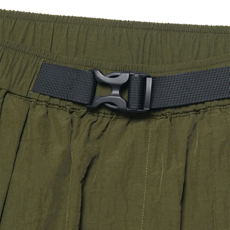 SHADE は「日陰」という意味です。真夏でも着用できるよう、薄手のナイロン生地で作られたパンツです。薄手のショーツ特有の不安定なフィット感を補うため、裾にドローストリングのディテールを追加しています。ドローストリングを絞ることで、パンプキンパンツ風のシルエットにも調整可能です。ウエストは開閉可能なバックルストラップ付きで、より着脱しやすくなっています。