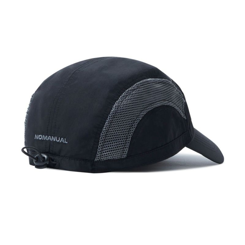 光沢のあるナイロン素材に、サイドのメッシュラインがアクセント。通気性とデザイン性を両立した、ストリート感あふれるキャップです。