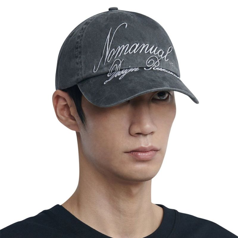 つばと本体にまたがる筆記体の刺繍デザインがクールなボールキャップ。 女性にもおすすめのユニセックスアイテムです。