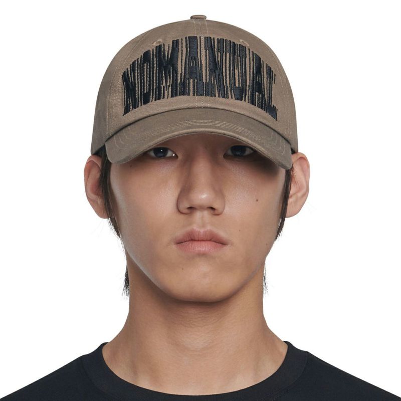 太めで存在感のあるグラフィックを使用したボールキャップ。単にボールドフォントを使っただけでなく、フォントを崩し、揺らぎのある効果を加えることで、独特な「揺れ感」のあるデザインに仕上げています。