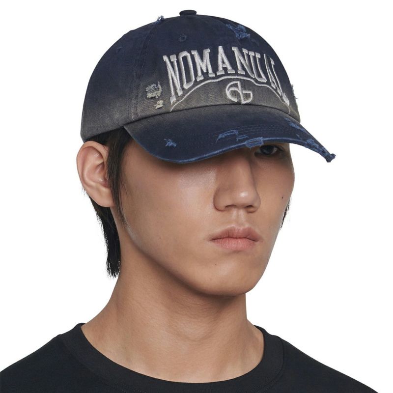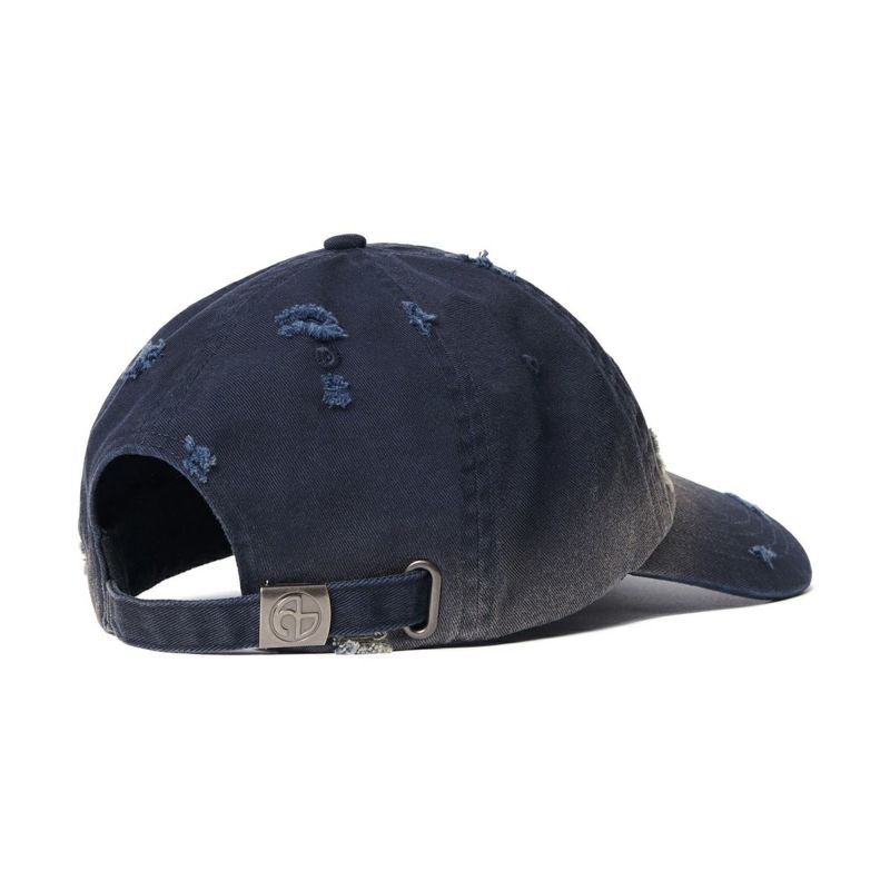 ツバ部分にアーチ型グラフィックをあえてカットするように配置し、洗練されすぎないラフな印象を演出したボールキャップ。サルファ(硫化)加工とダメージ加工を施し、ヴィンテージ感と粗さをプラスしたデザインが特徴です。