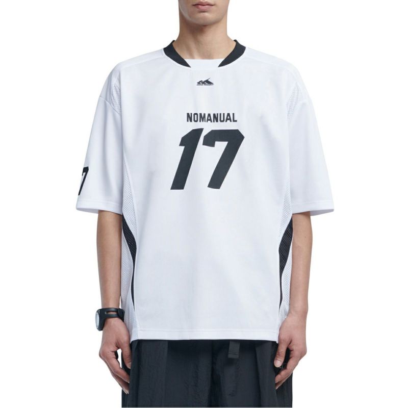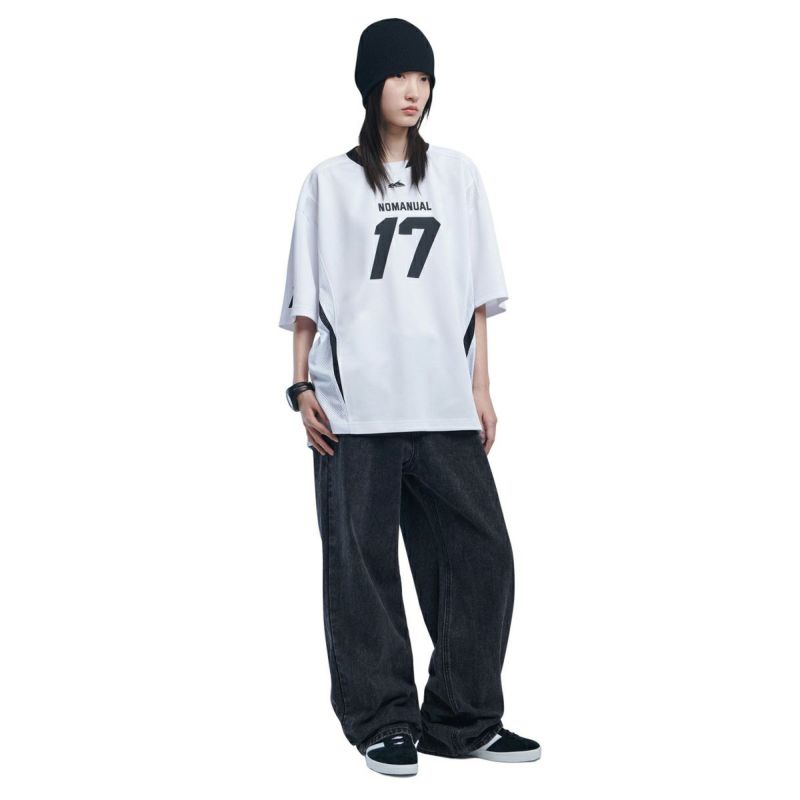 背番号「17」が印象的なフットボールライクなゲームシャツ。 通気性に優れたポリエステル素材を使用し、両サイドにはメッシュパネルを配置することで、真夏でもさらっと快適な着心地を実現。 ゆったりとしたボックスシルエットで、一枚でもレイヤードでも映える万能トップス。
