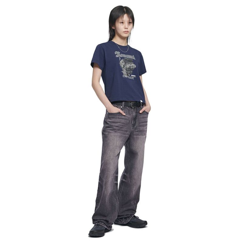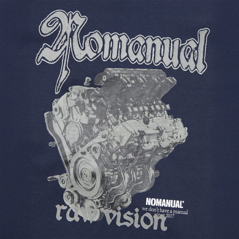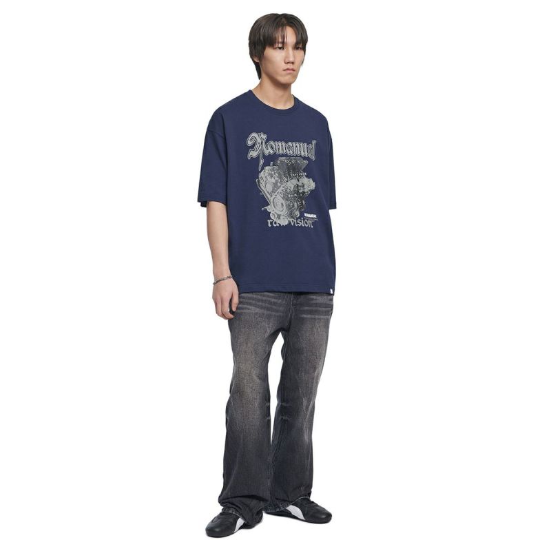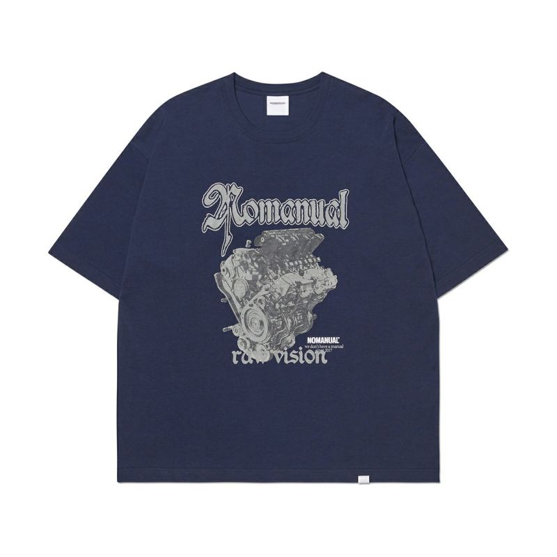 架空のエンジン構造をモチーフにしたグラフィック。 3色を使用した高密度プリントで、緻密なデザイン表現が特徴です。 細番手の32番糸を2本撚り合わせた高密度な生地で、耐久性に優れています。 酵素を用いて表面の短繊維を取り除き、なめらかで涼しげな風合いを実現。 縫製前に生地を水に浸して縮ませることで、洗濯後の型崩れを軽減します。