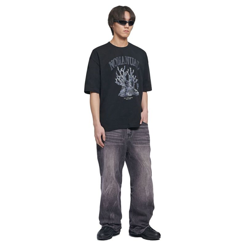 メタル調のサンゴ礁グラフィックが特徴の半袖Tシャツ。 3色を使った高密度グラフィックプリントが特徴です。 細番手の32番糸を2本撚り合わせた高密度な生地で、耐久性に優れています。 酵素を用いて表面の短繊維を取り除き、なめらかで涼しげな風合いを実現。 縫製前に生地を水に浸して縮ませることで、洗濯後の型崩れを軽減します。