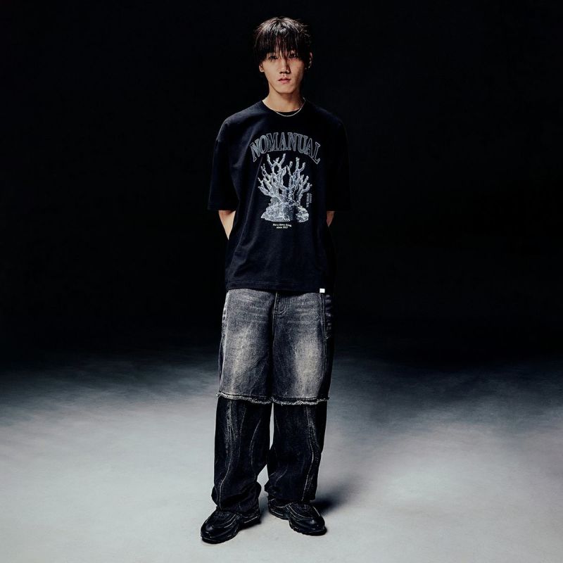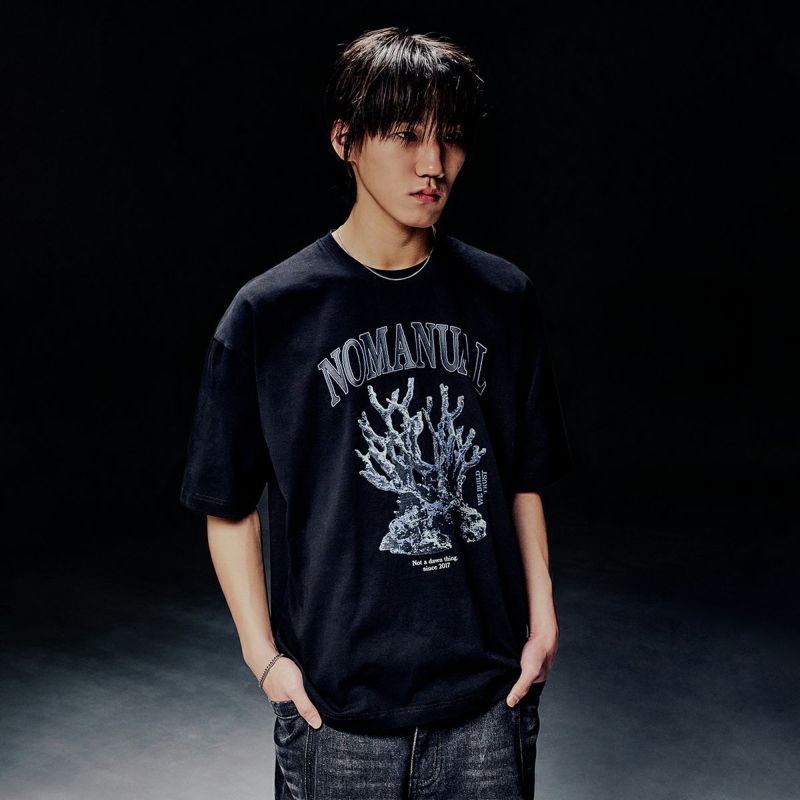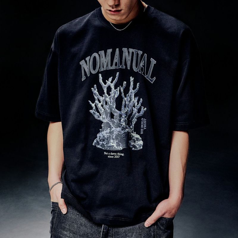 メタル調のサンゴ礁グラフィックが特徴の半袖Tシャツ。 3色を使った高密度グラフィックプリントが特徴です。 細番手の32番糸を2本撚り合わせた高密度な生地で、耐久性に優れています。 酵素を用いて表面の短繊維を取り除き、なめらかで涼しげな風合いを実現。 縫製前に生地を水に浸して縮ませることで、洗濯後の型崩れを軽減します。