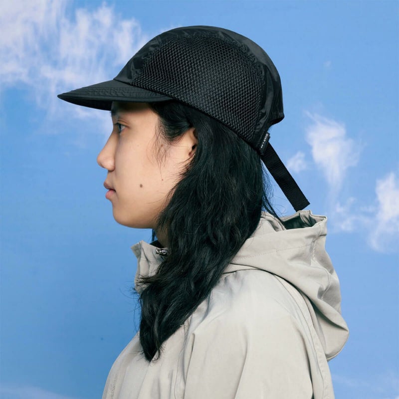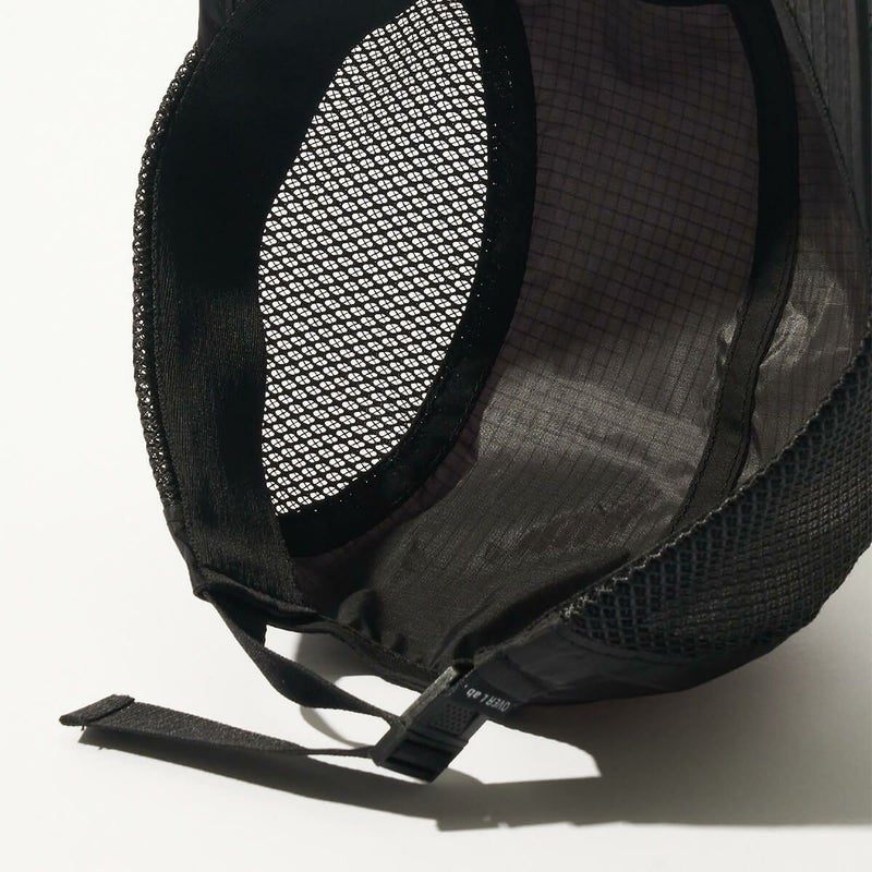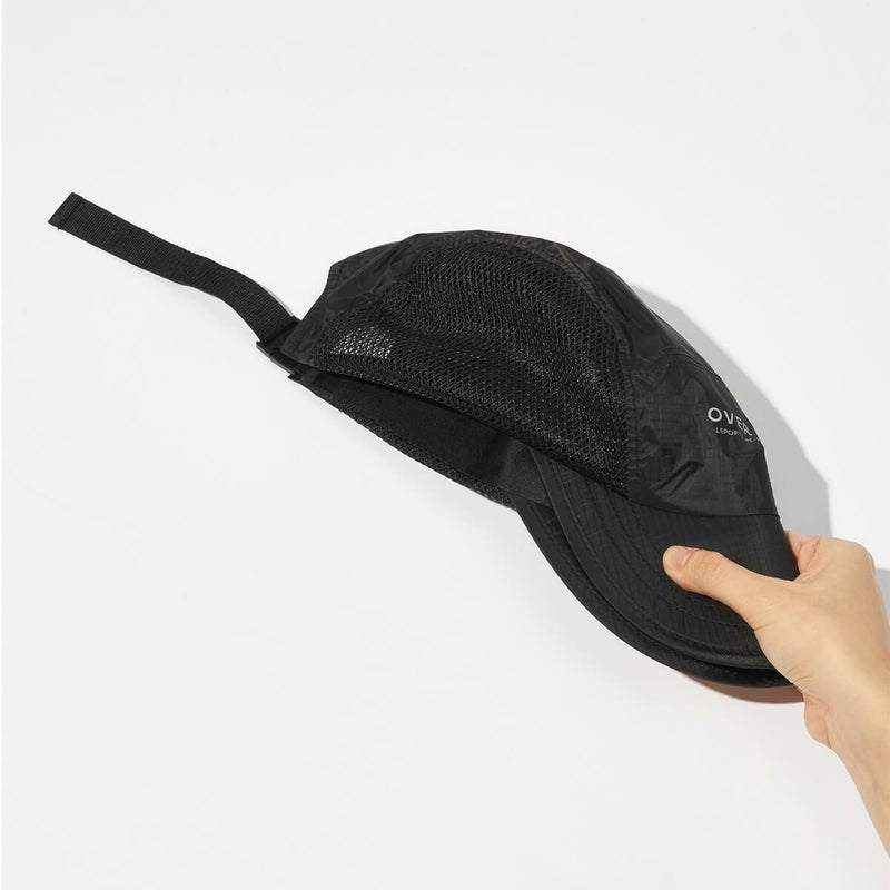 サイドメッシュは汗の発散を助け、ゴム素材のつばは折りたためるので収納に便利です。