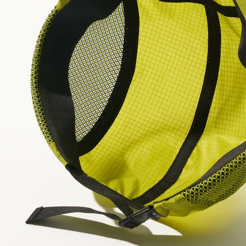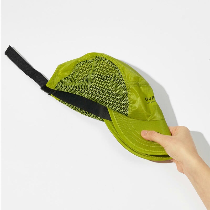 サイドメッシュは汗の発散を助け、ゴム素材のつばは折りたためるので収納に便利です。