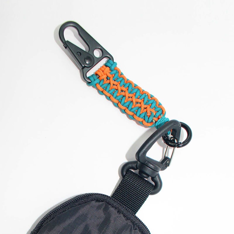 パラグライダーのロープで作られており、重い荷重にも耐えられるうえ、上下異なる形のフックがついており、高い実用性を誇ります。