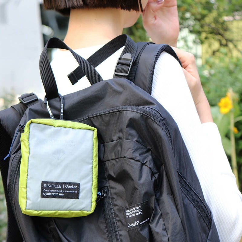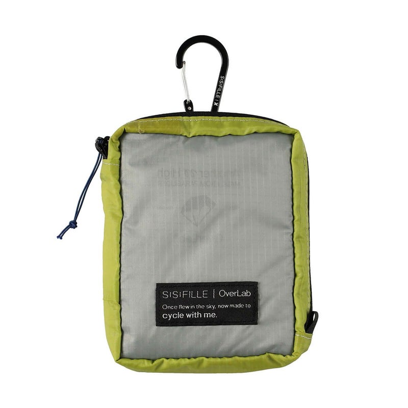 SISIFILLE×OverLab コラボレーションポーチ 地球とカラダに優しい、ハッピーな持ち歩き習慣を。 地球の環境を考えるOverLabと、女性の体の環境を考えるSISIFILLE。 2つのブランドが出会い、初めて生まれたコラボレーションアイテムです。 Once flew in the sky, now made to cycle with me. かつて空を舞い、今は私とともにめぐる バッグの中でナプキンの居場所を探す手間やかさばりを解消するために、「あえて外付け」にこだわりました。 カラビナ付きでバッグやベルトに簡単に取り付けられるので、ナプキンをアクセサリー感覚で持ち歩く、新しいライフスタイルを提案します。 ・ナプキン収納にぴったりのサイズ ナプキンが3枚から5枚収納可能。内側にはメッシュポケット付きで、薬やリップなどの小物も一緒に整理できます。裏地付きで中身が透けず、安心して持ち運び可能です。 ・カラビナ付きで自由に持ち運び バッグやウエストに引っ掛けて簡単に取り出せます。お気に入りのストラップと組み合わせれば、ちょっとしたミニバッグとしてのコーディネートも楽しめます。 ・ハッピーで機能的なデザイン 明るいバイカラーで気分も上がるデザイン。 メッセージ「cycle with me」が日常にちょっとした遊び心をプラス。 SISIFILLEのブランドタグ付きで、品質とデザイン性を両立。 ・コンセプト 「ナプキンをハッピーに持ち運ぶ」 バッグの外でも自然に、ポーチが日常のアクセサリーのひとつになるようにデザインしました。